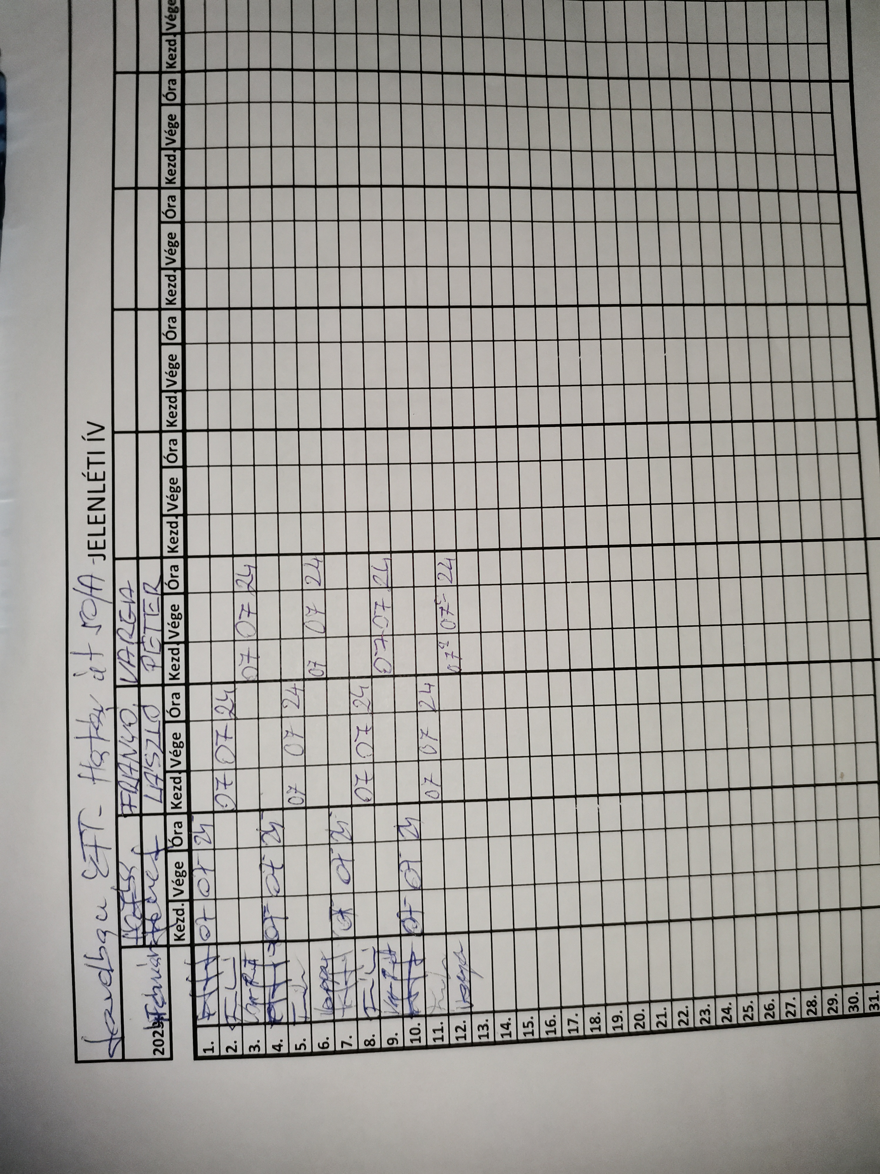 | A munkaidő nyilvántartás (jelenléti ív) vezetése | Megfelel |