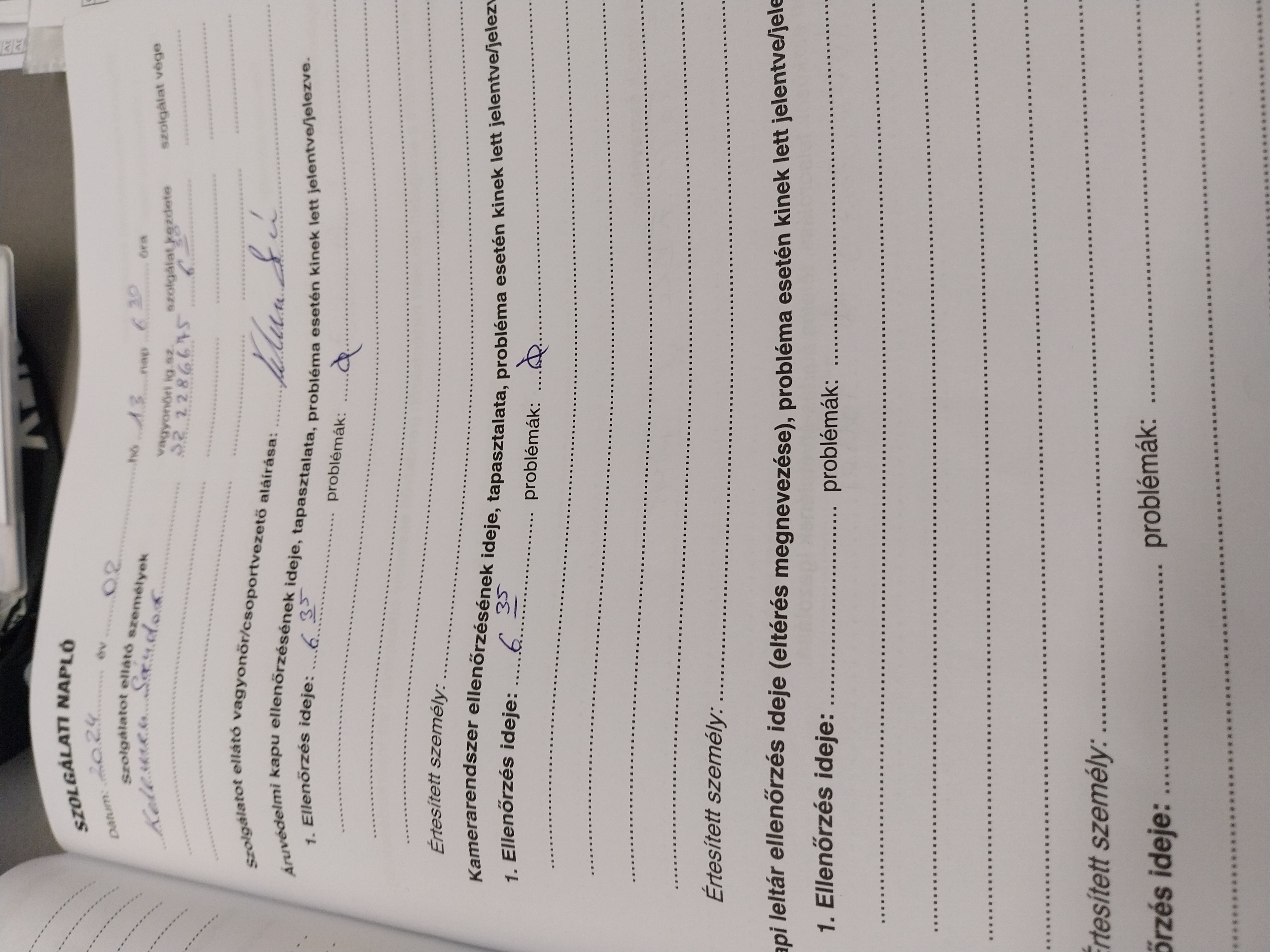 | Az őrzési helyre kiadott munkaeszközök megléte | Megfelel |