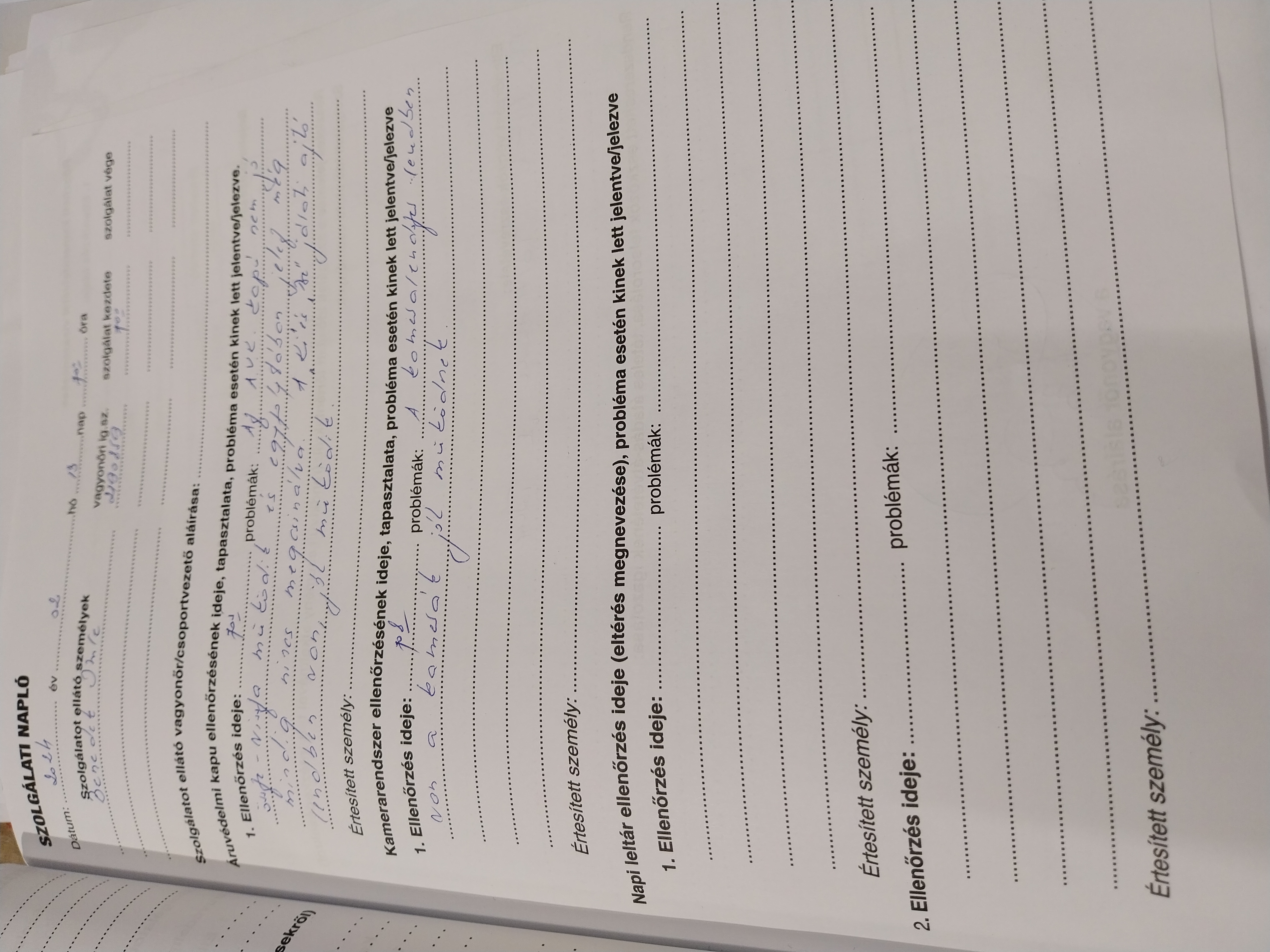 | Az őrhely belső rendje | Megfelel |