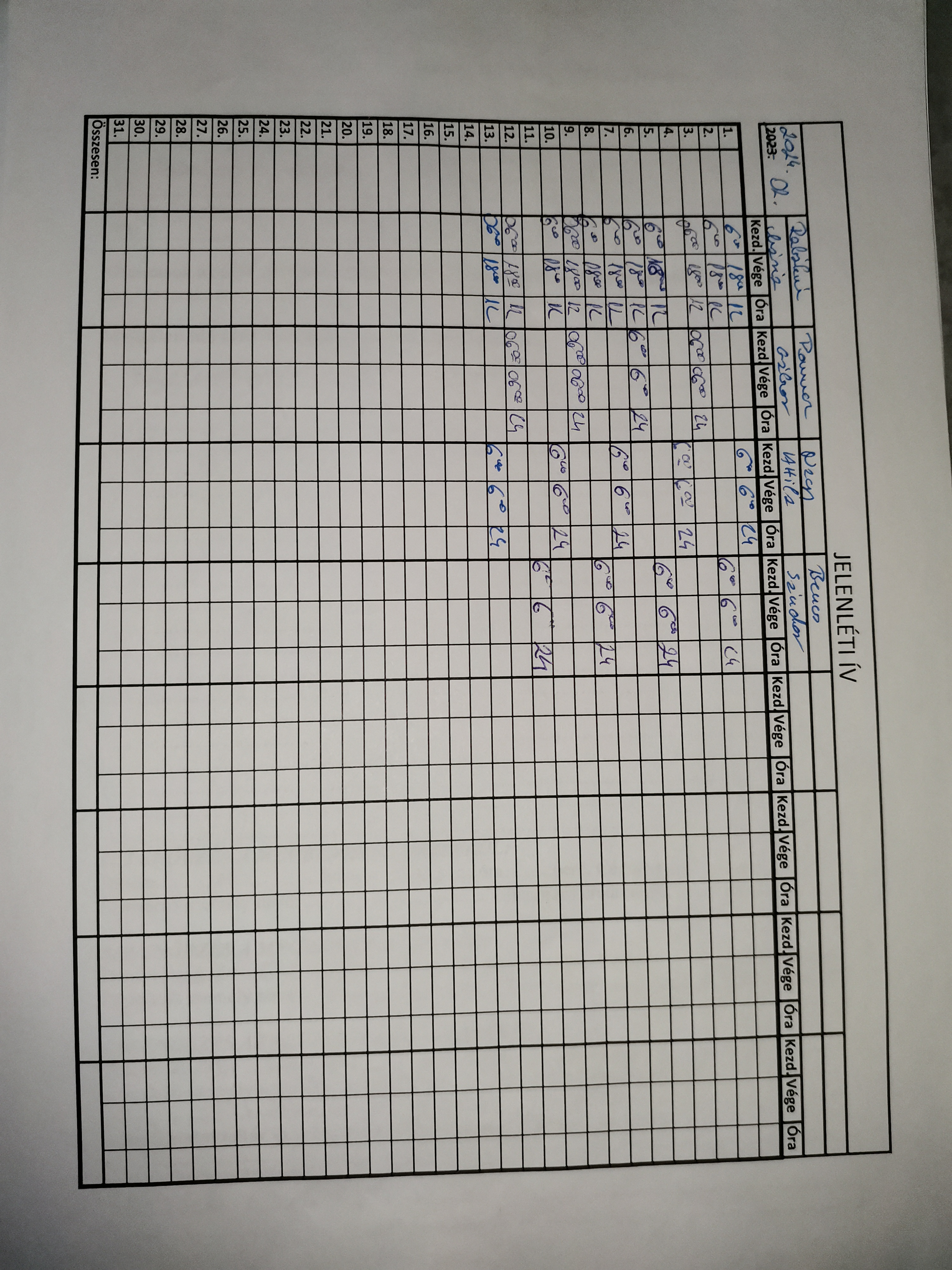 | A munkaidő nyilvántartás (jelenléti ív) vezetése | Megfelel |