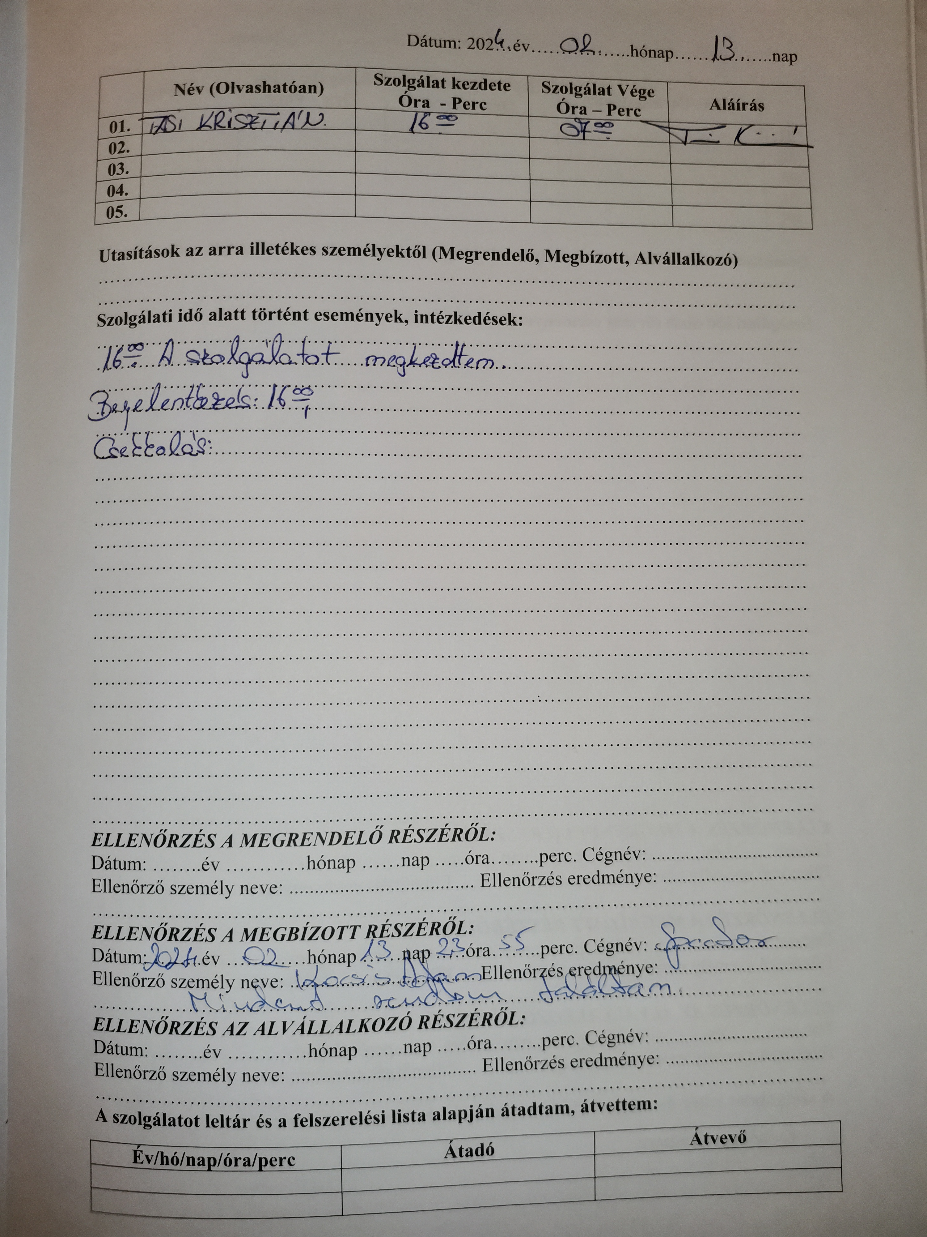 | Az őrhelyre kötelezően előírt oktatások igazolásának megléte | Megfelel |