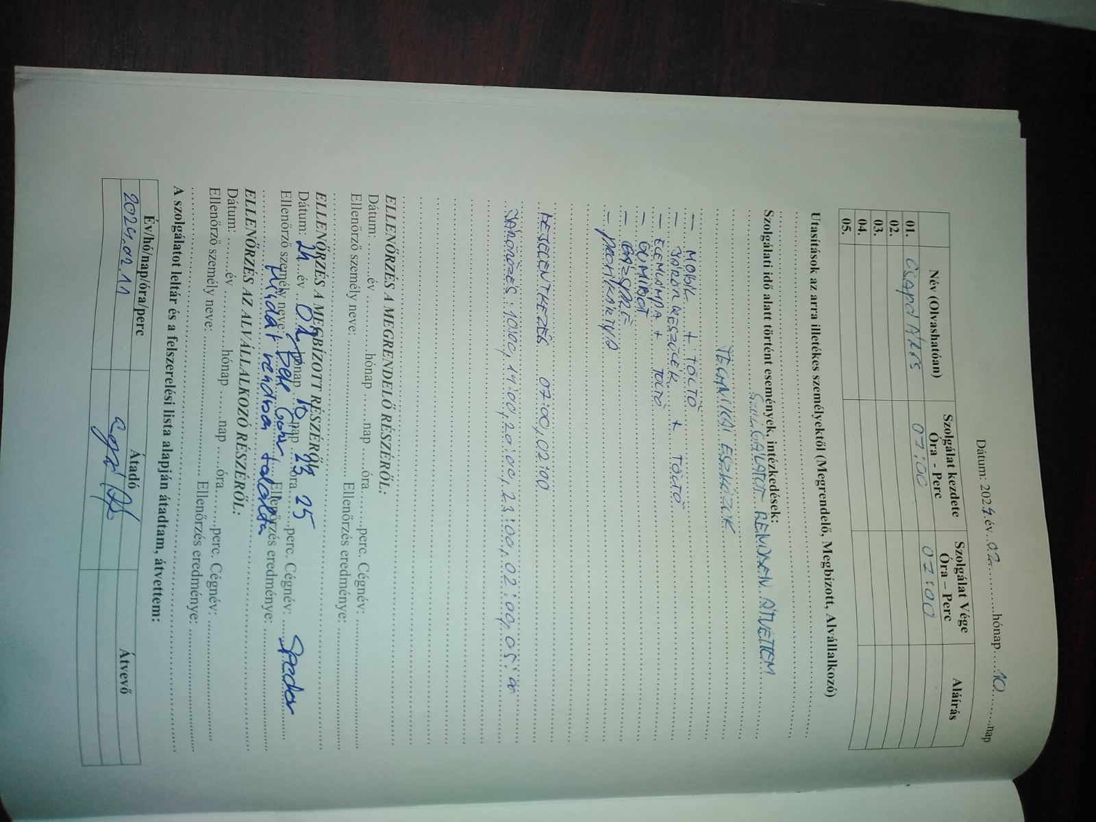 | Az őrzési helyre kiadott munkaeszközök megléte | Megfelel |