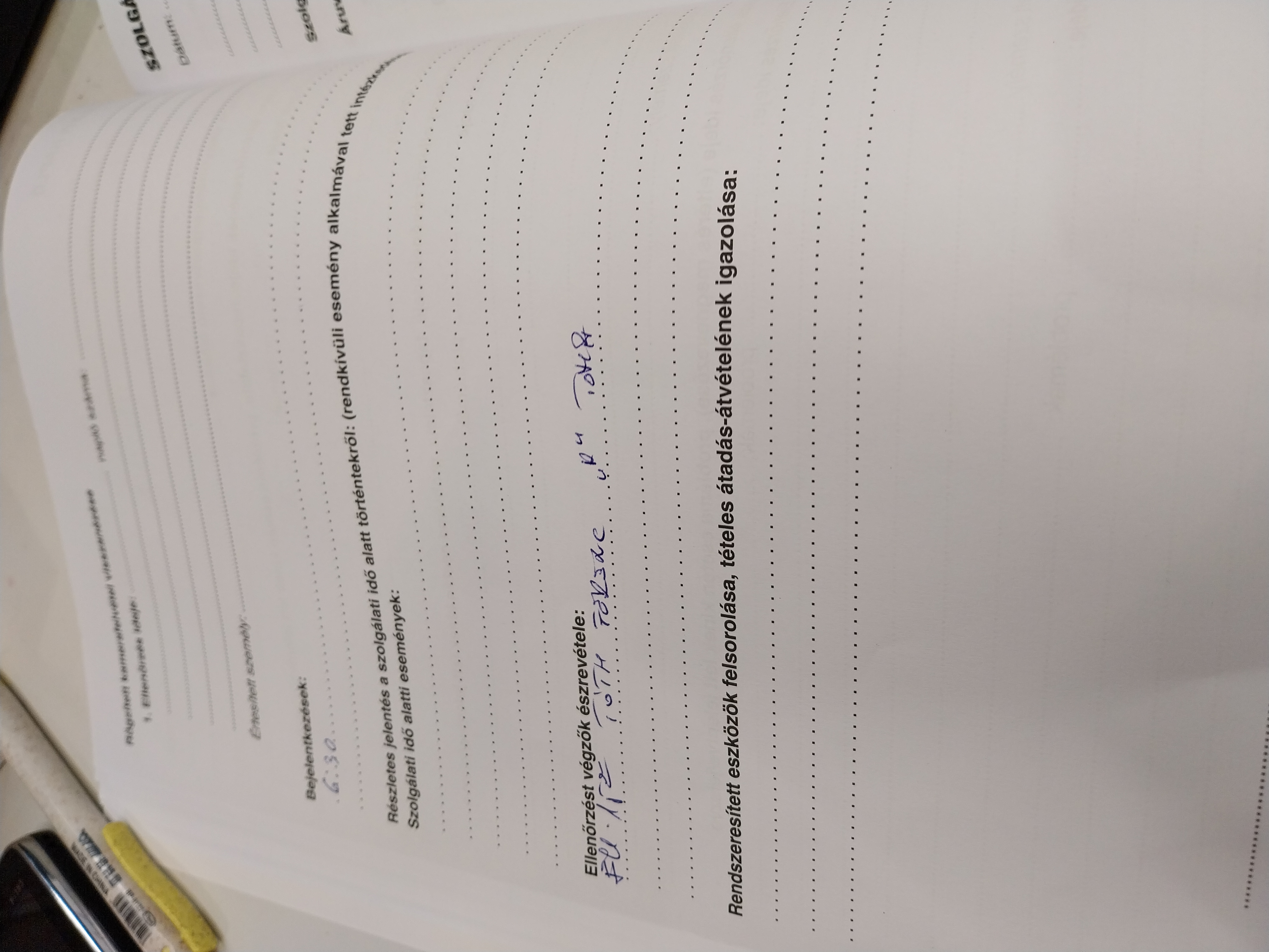 | Az előírt szolgálati okmányok rendelkezésre állása | Megfelel |
