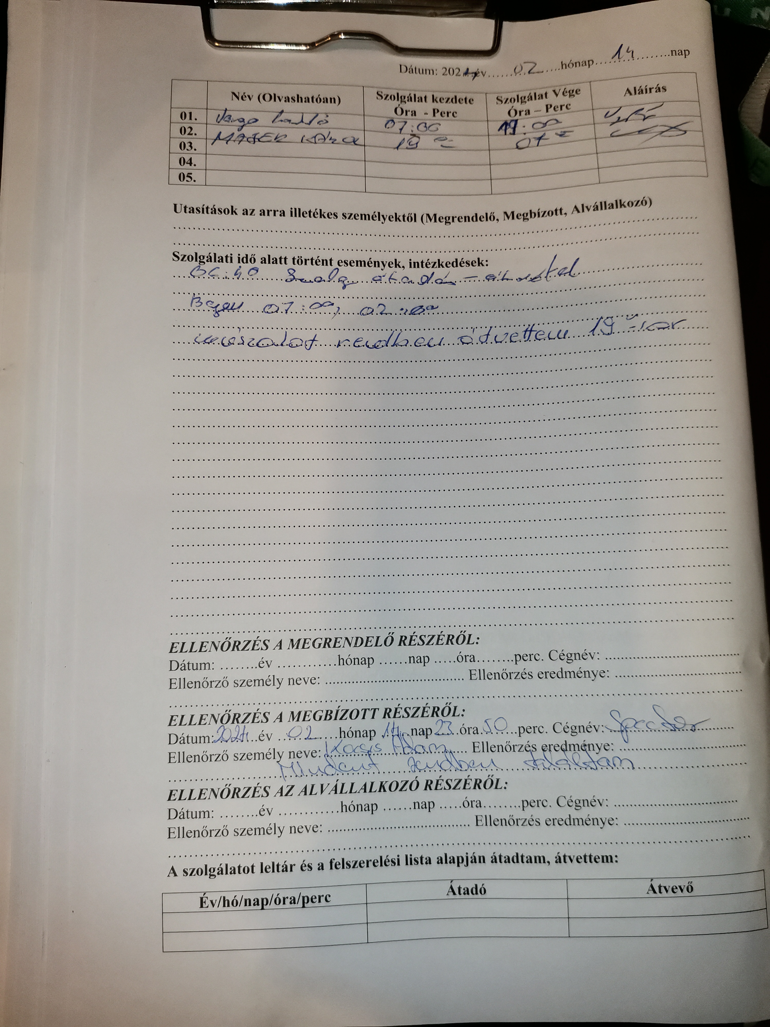 | Van-e az ellenőrzött személynek egyéb észrevétele, javaslata? | Nem |