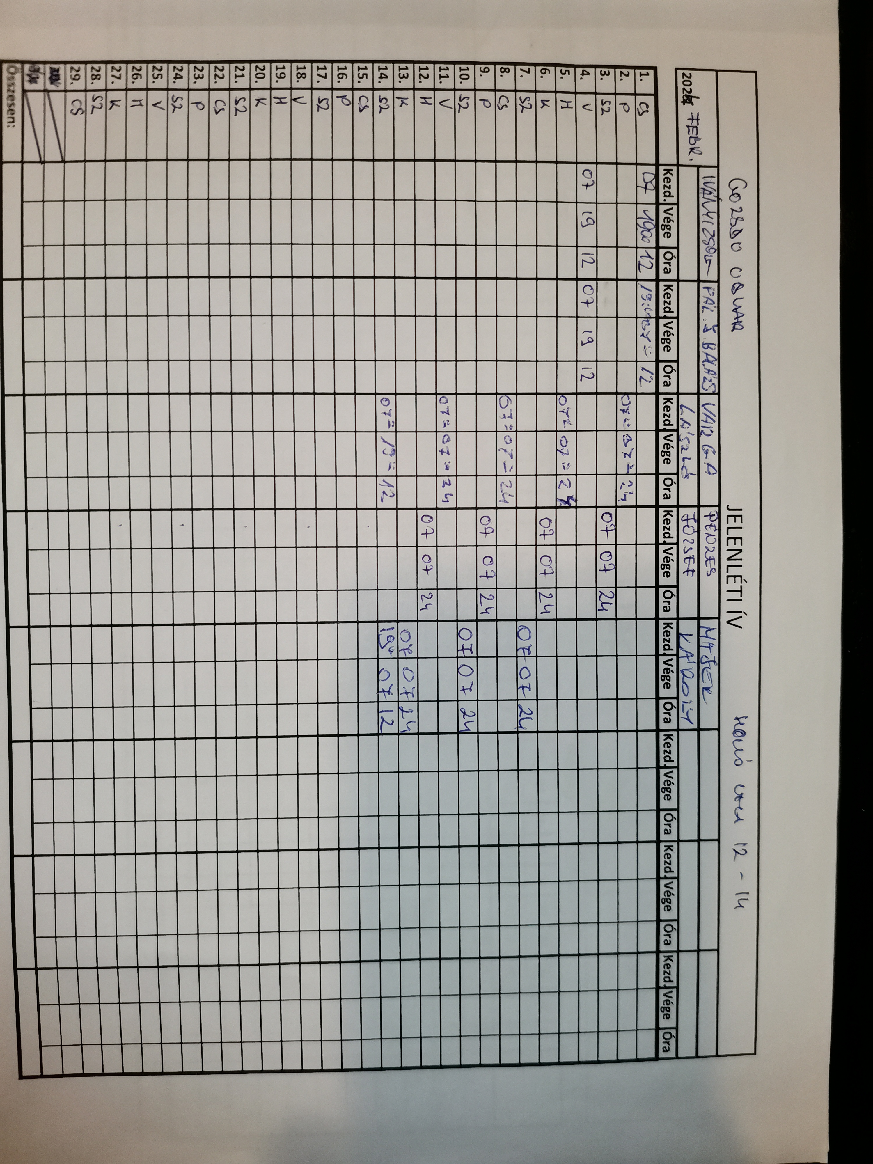| A munkaidő nyilvántartás (jelenléti ív) vezetése | Megfelel |