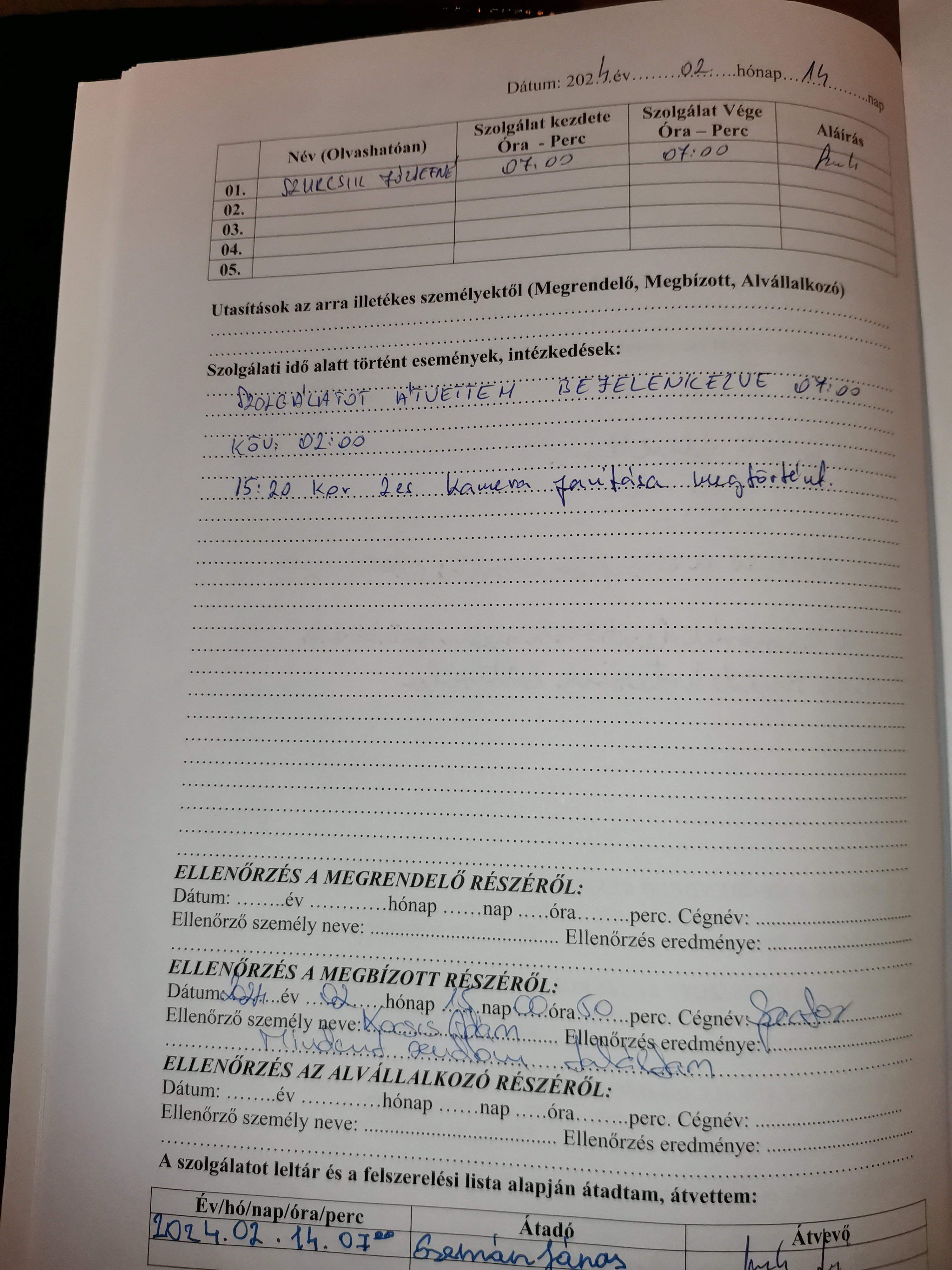 | Van-e az ellenőrzött személynek egyéb észrevétele, javaslata? | Nem |