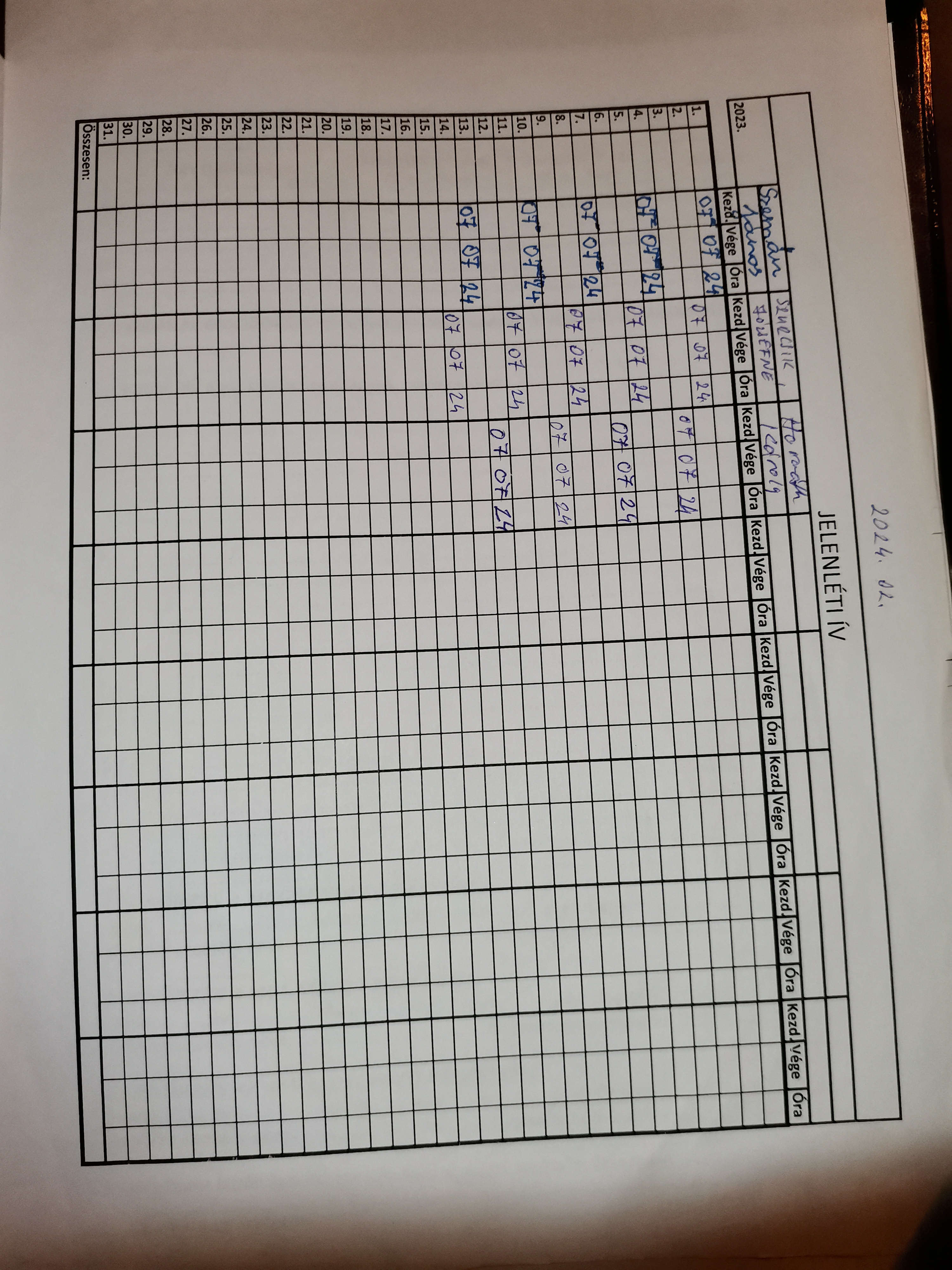 | A munkaidő nyilvántartás (jelenléti ív) vezetése | Megfelel |