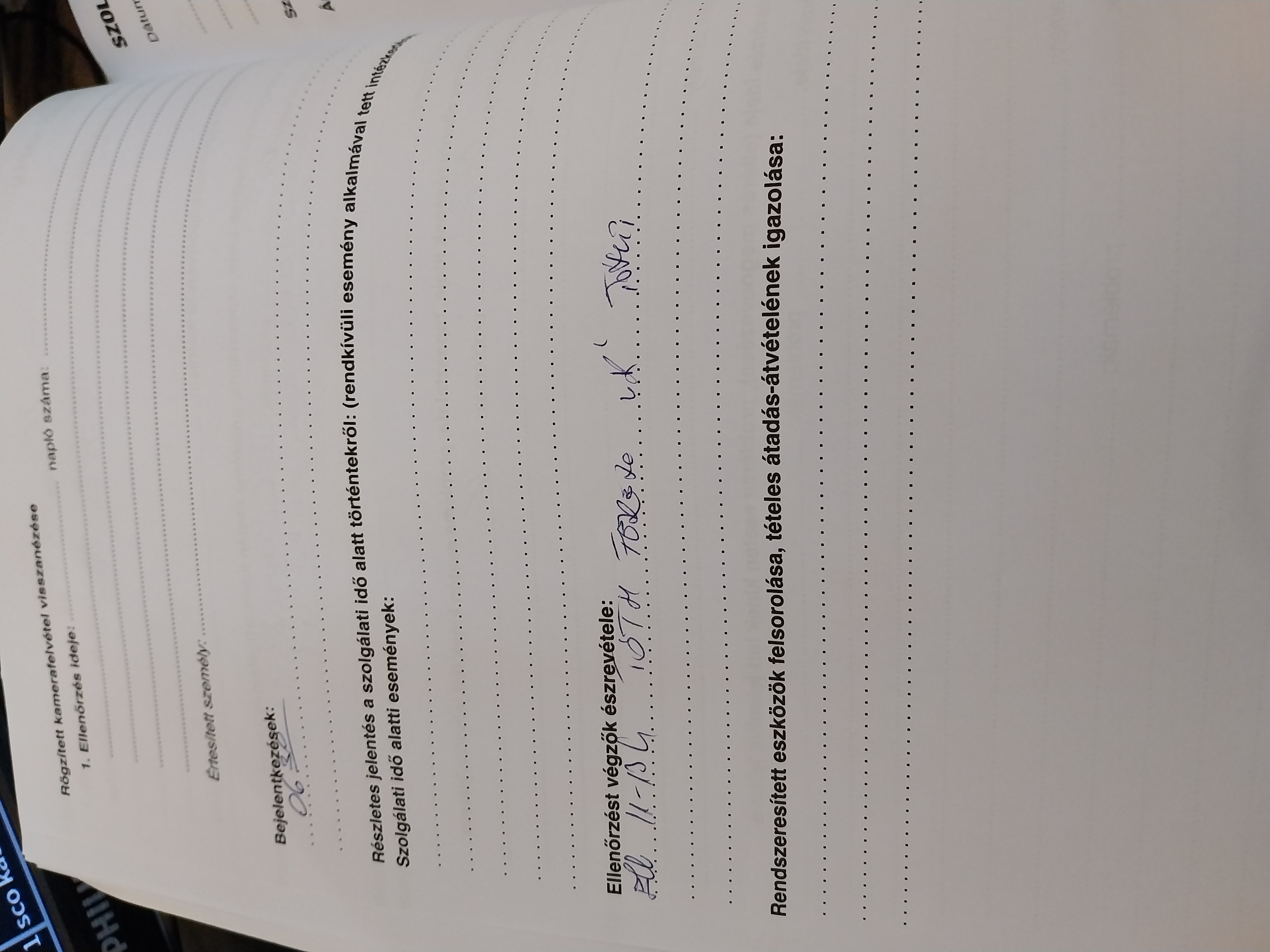 | Az őrzési helyre kiadott munkaeszközök megléte | Megfelel |