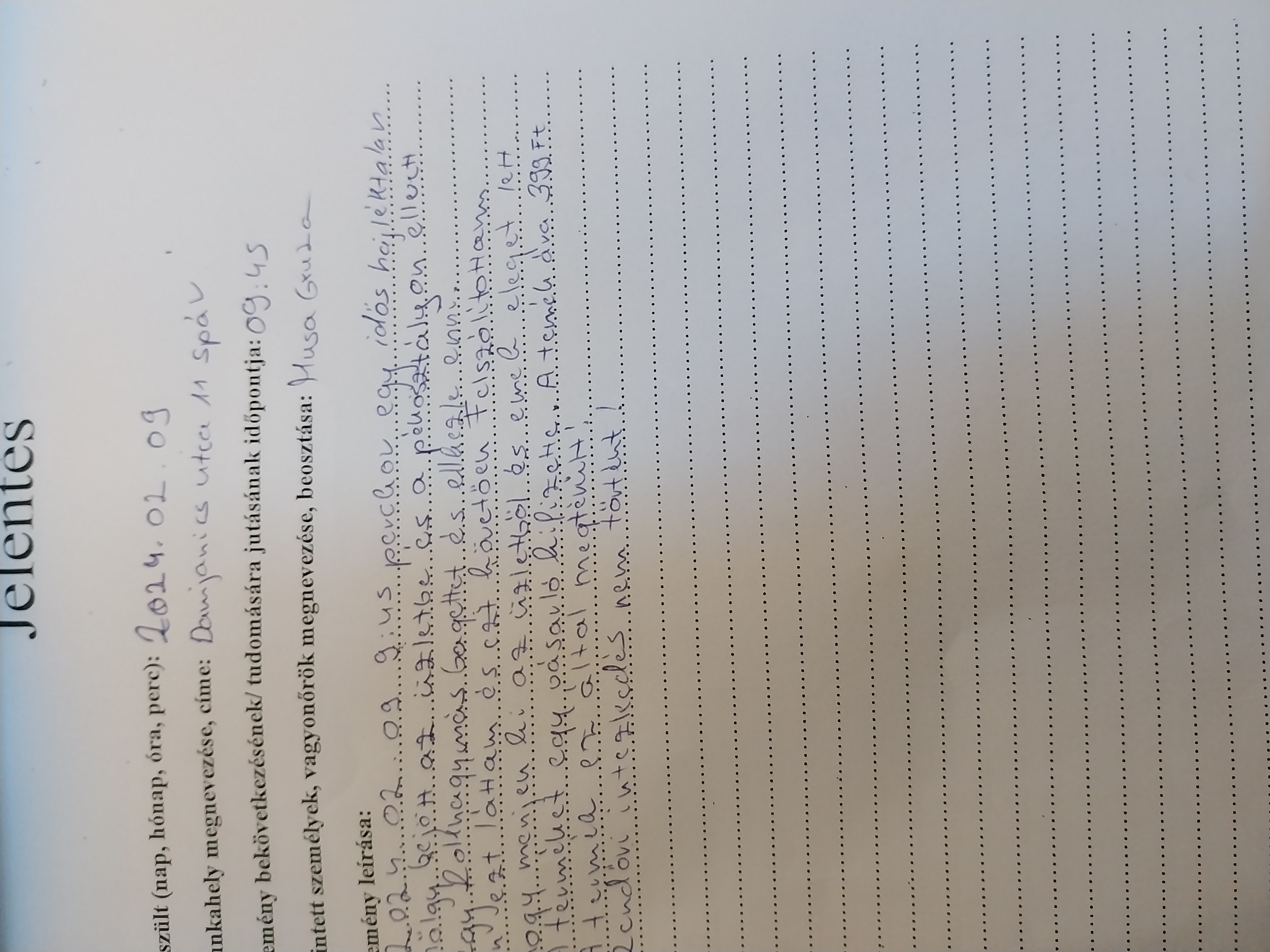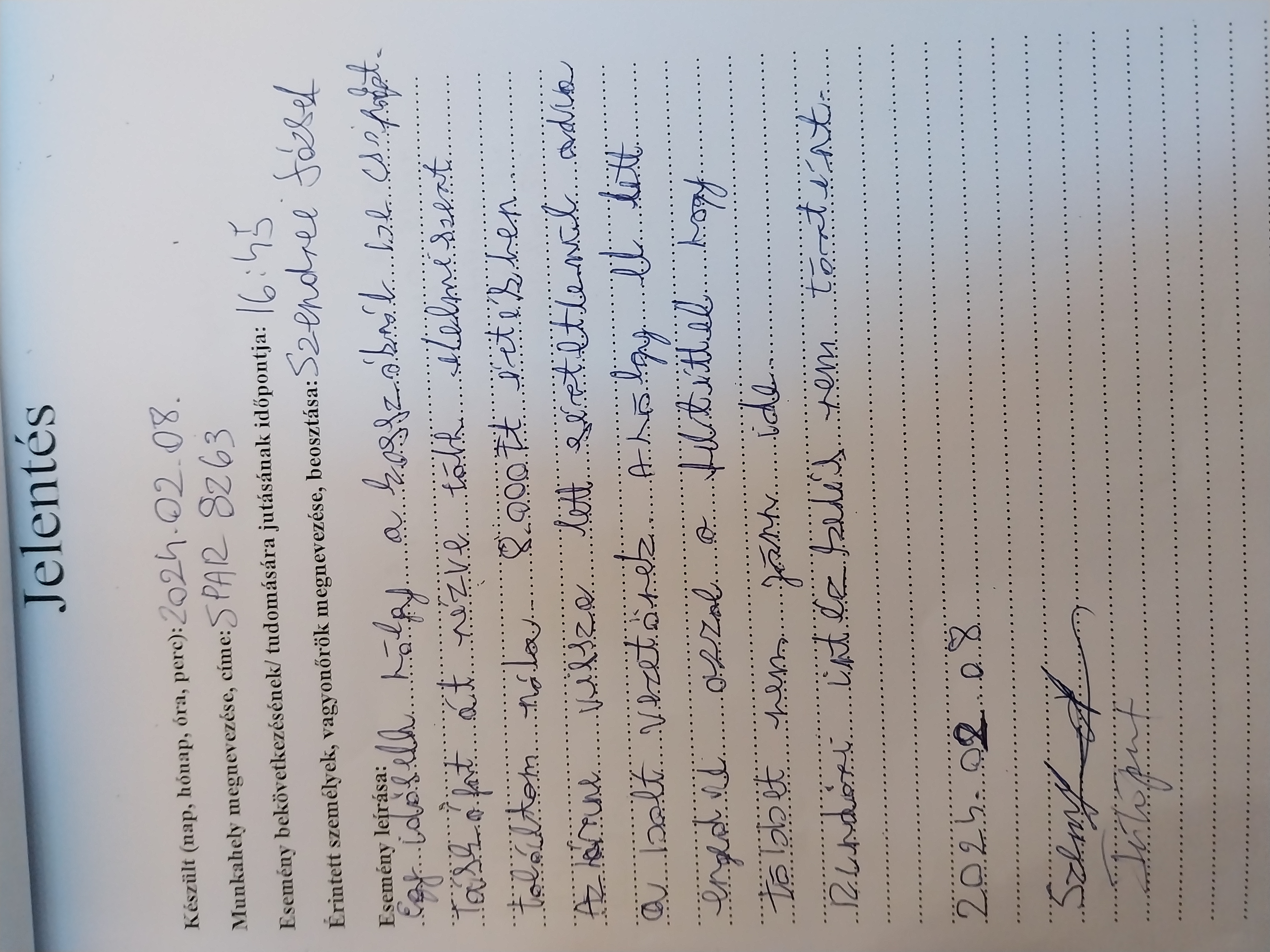 | Alkoholszondás ellenőrzés történt? | Nem |