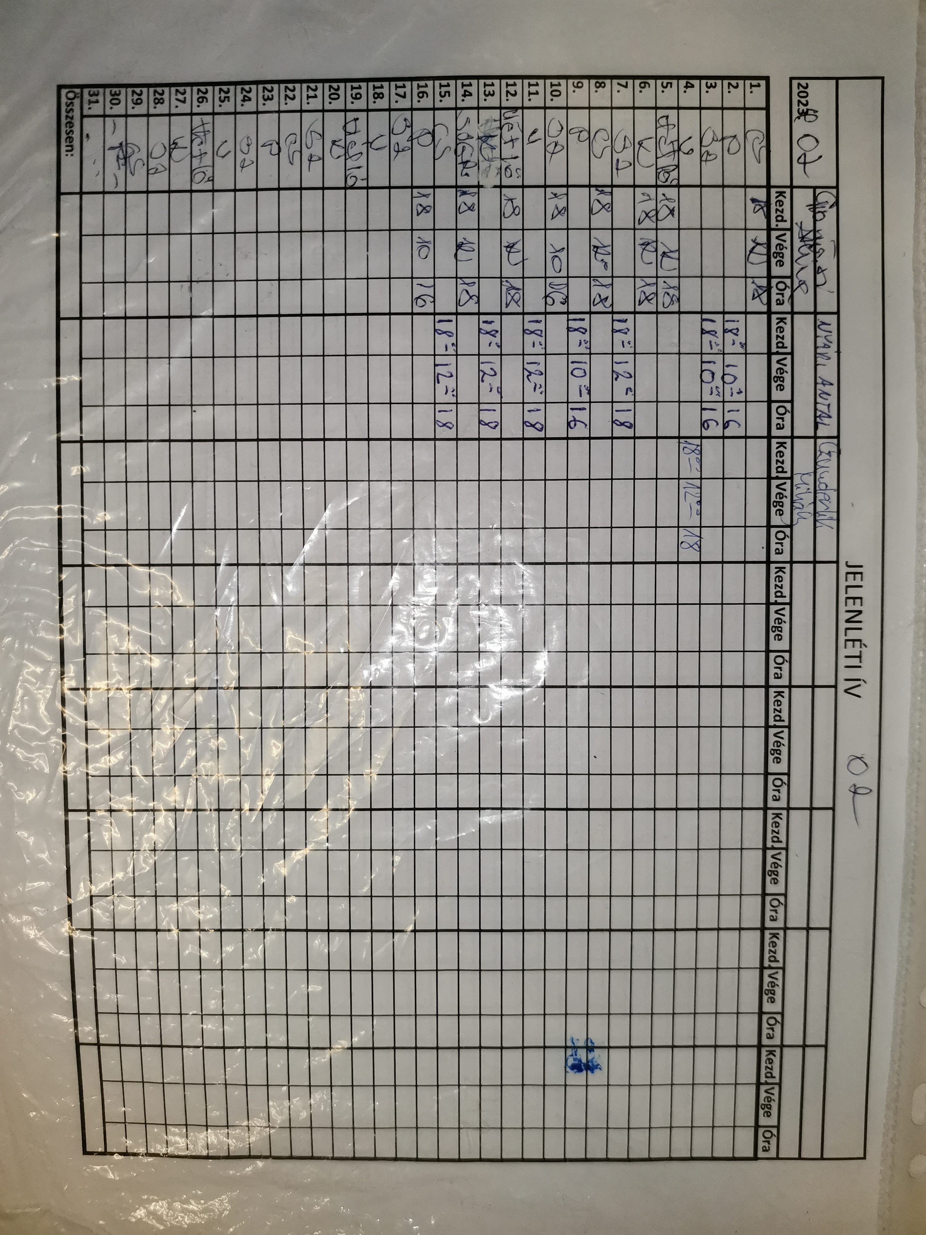 | A munkaidő nyilvántartás (jelenléti ív) vezetése | Megfelel |