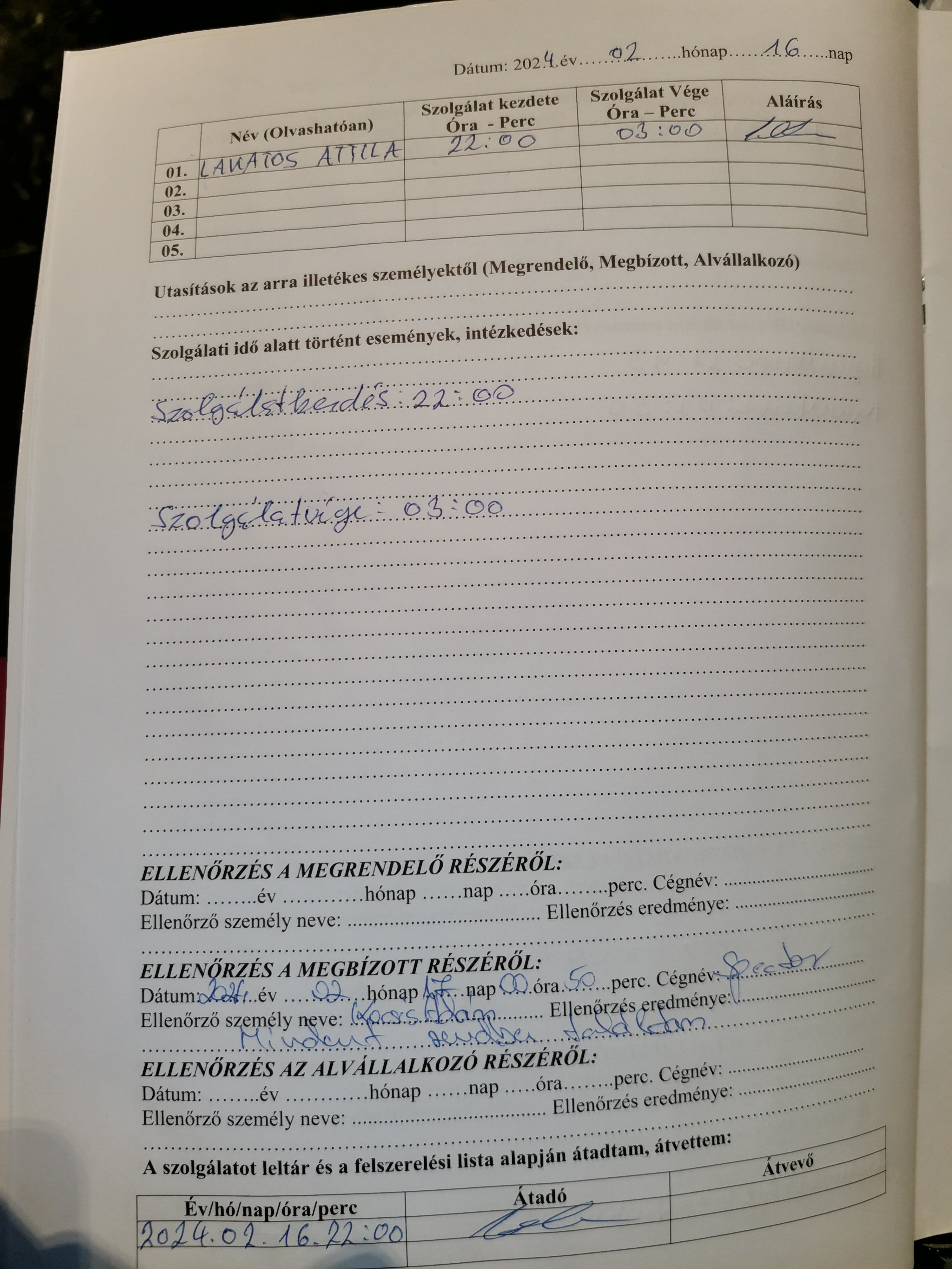 | Az ellenőrzött személy neve | Lakatos Attila |