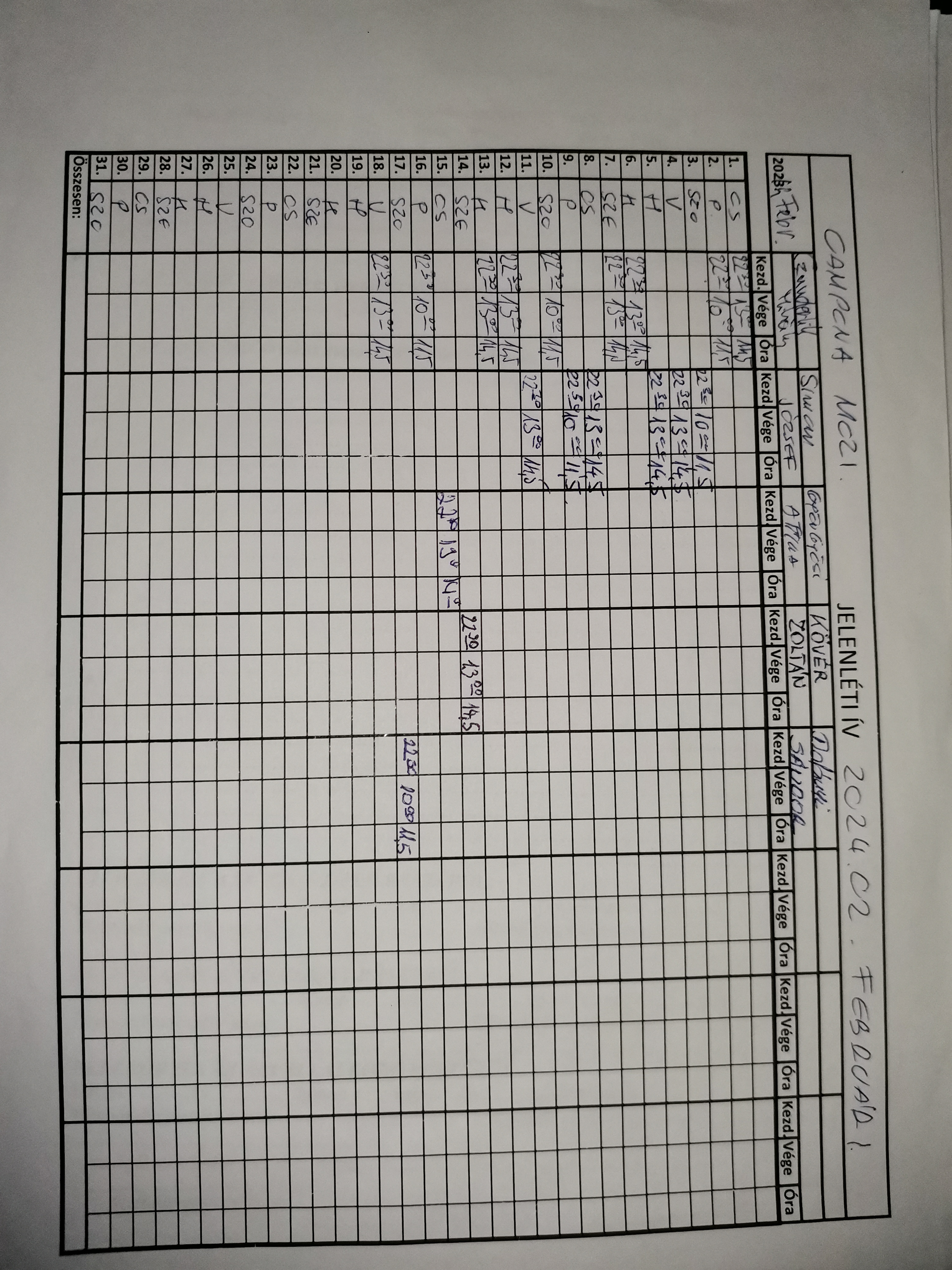 | A munkaidő nyilvántartás (jelenléti ív) vezetése | Megfelel |