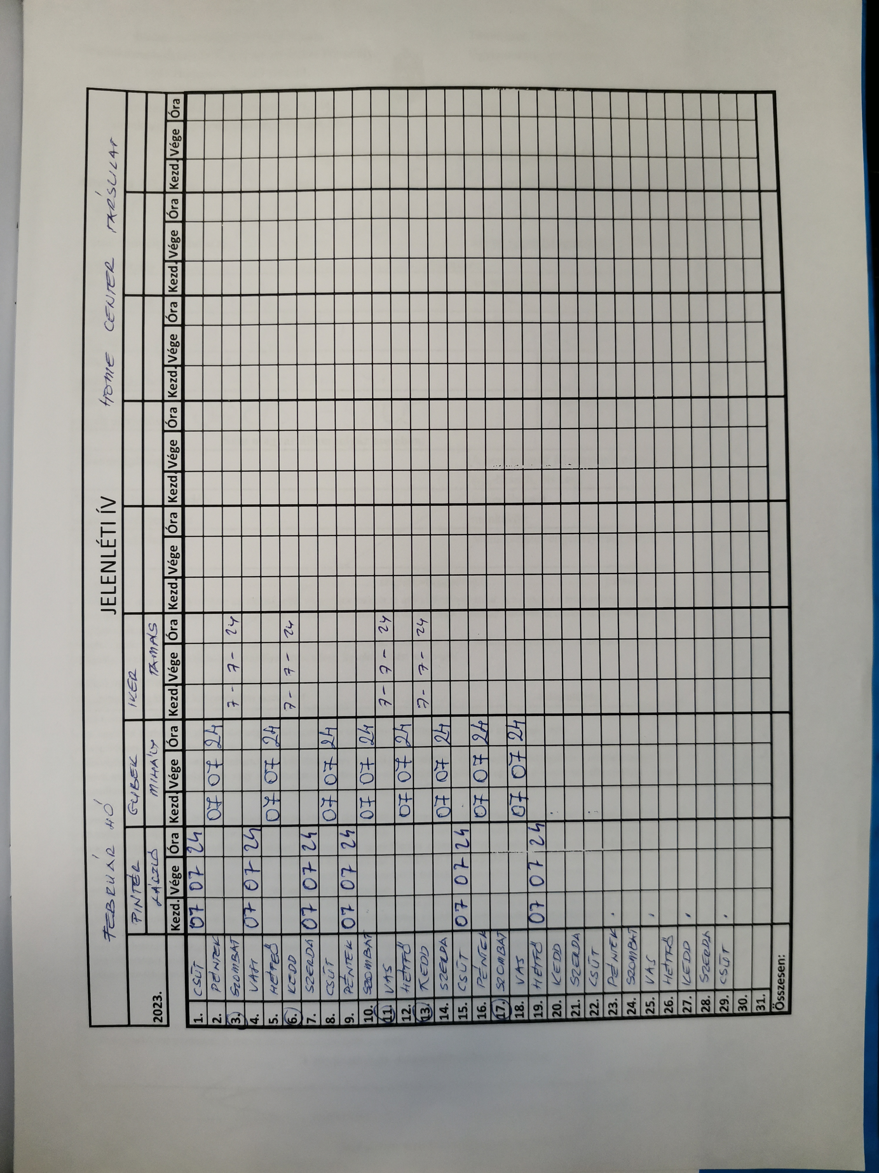 | A munkaidő nyilvántartás (jelenléti ív) vezetése | Megfelel |