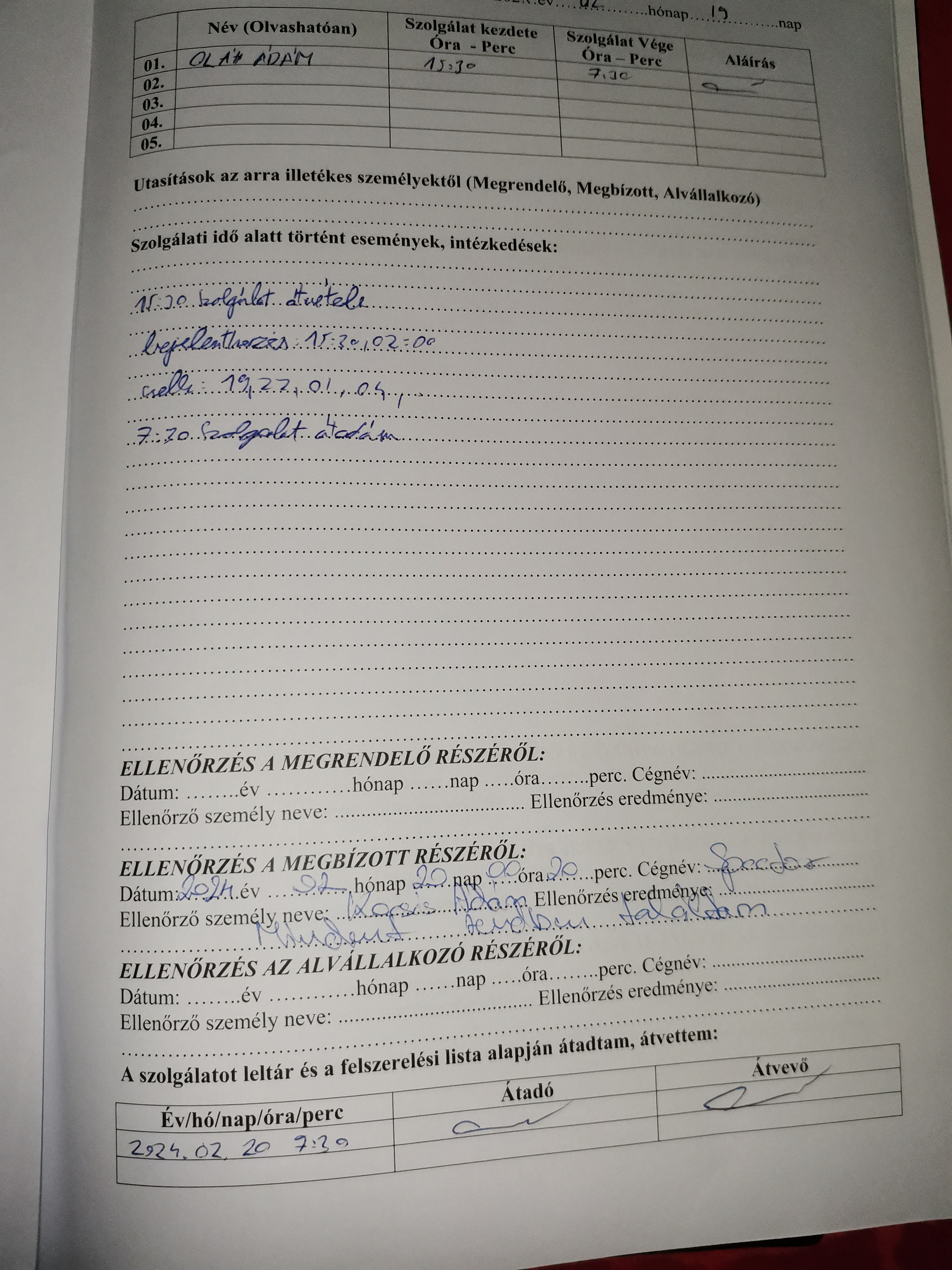 | Az ellenőrzött személy neve | Oláh Ádám |
