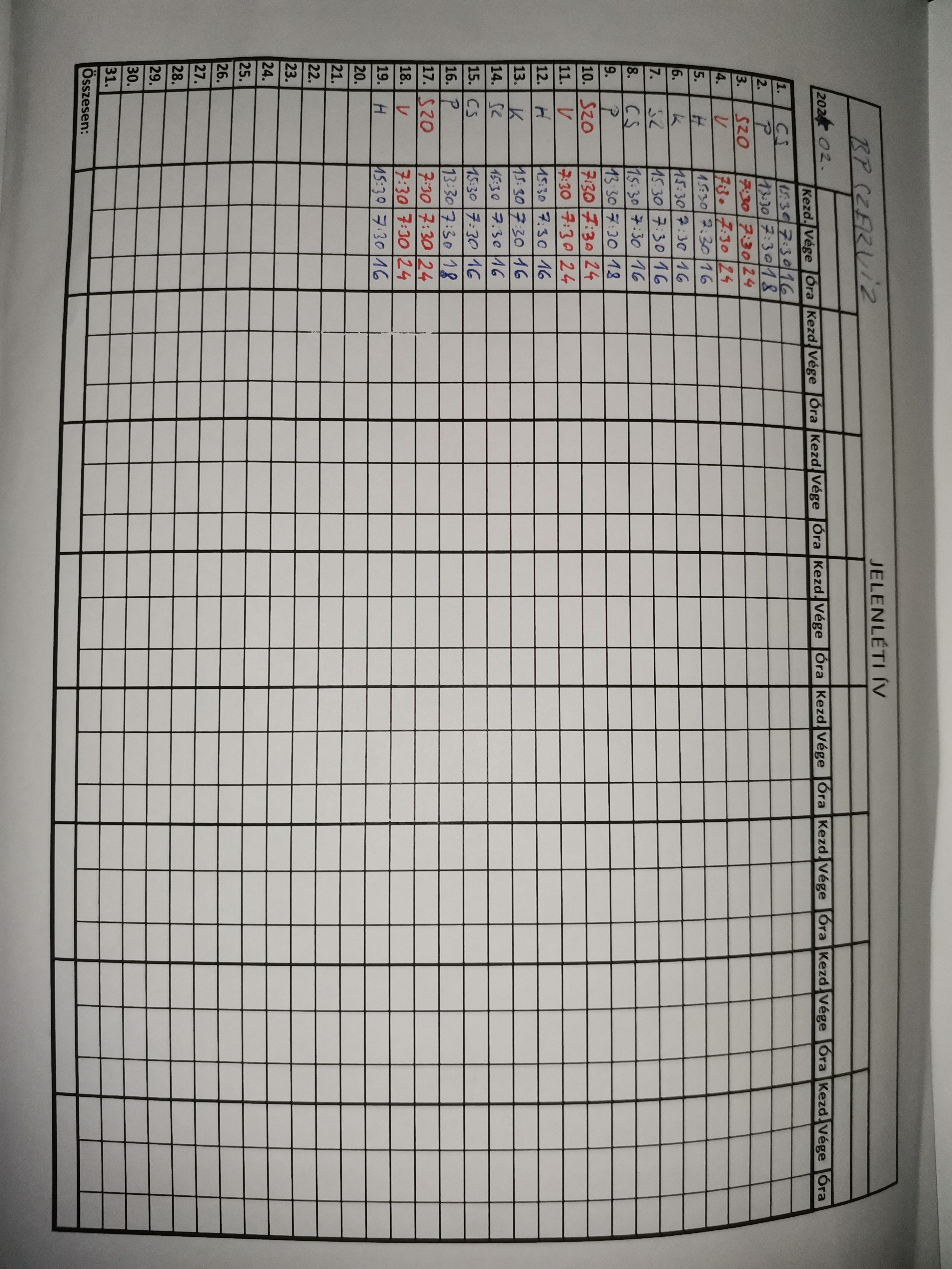 | A munkaidő nyilvántartás (jelenléti ív) vezetése | Megfelel |