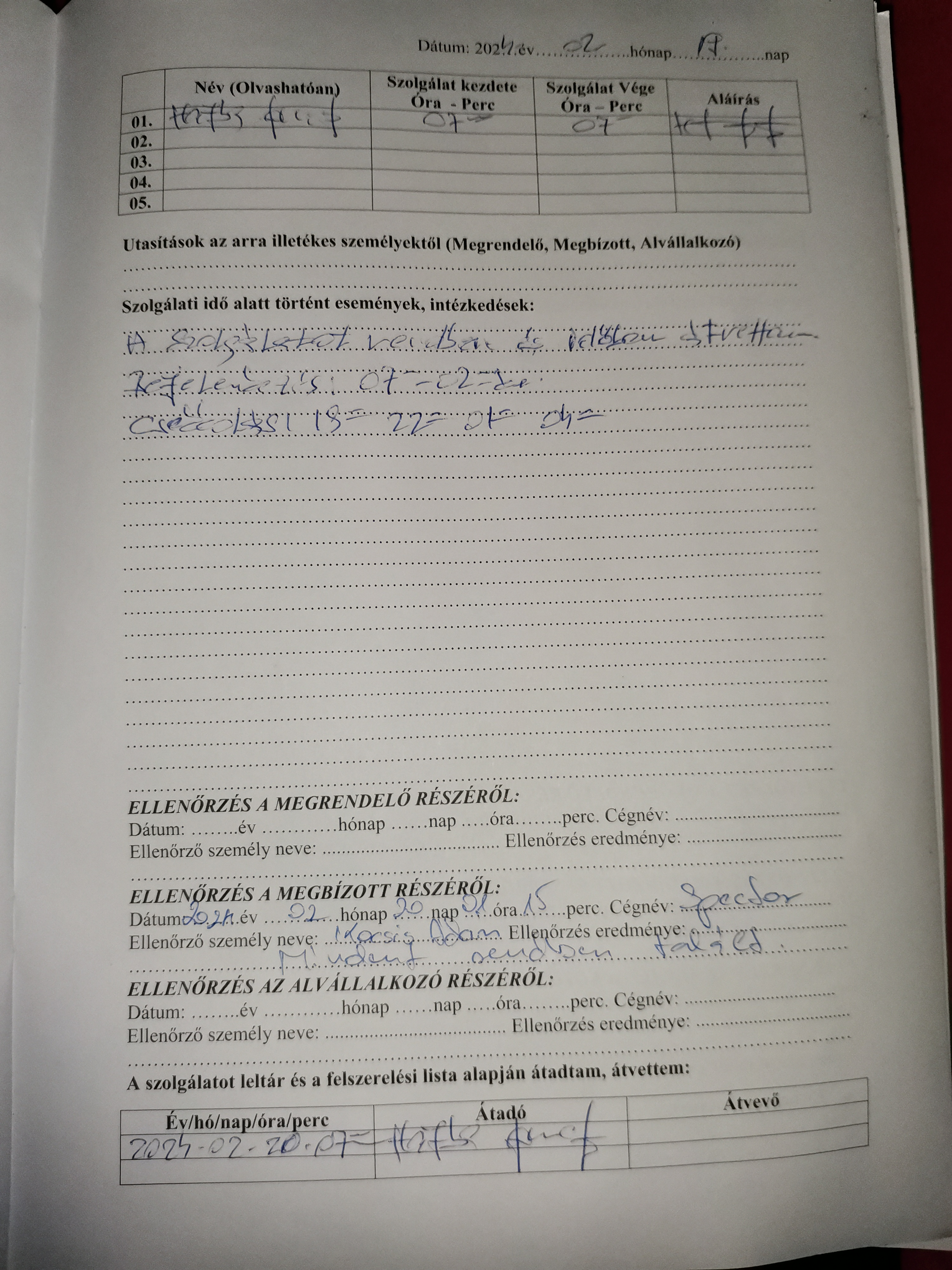 | Az őrhelyre kötelezően előírt oktatások igazolásának megléte | Megfelel |