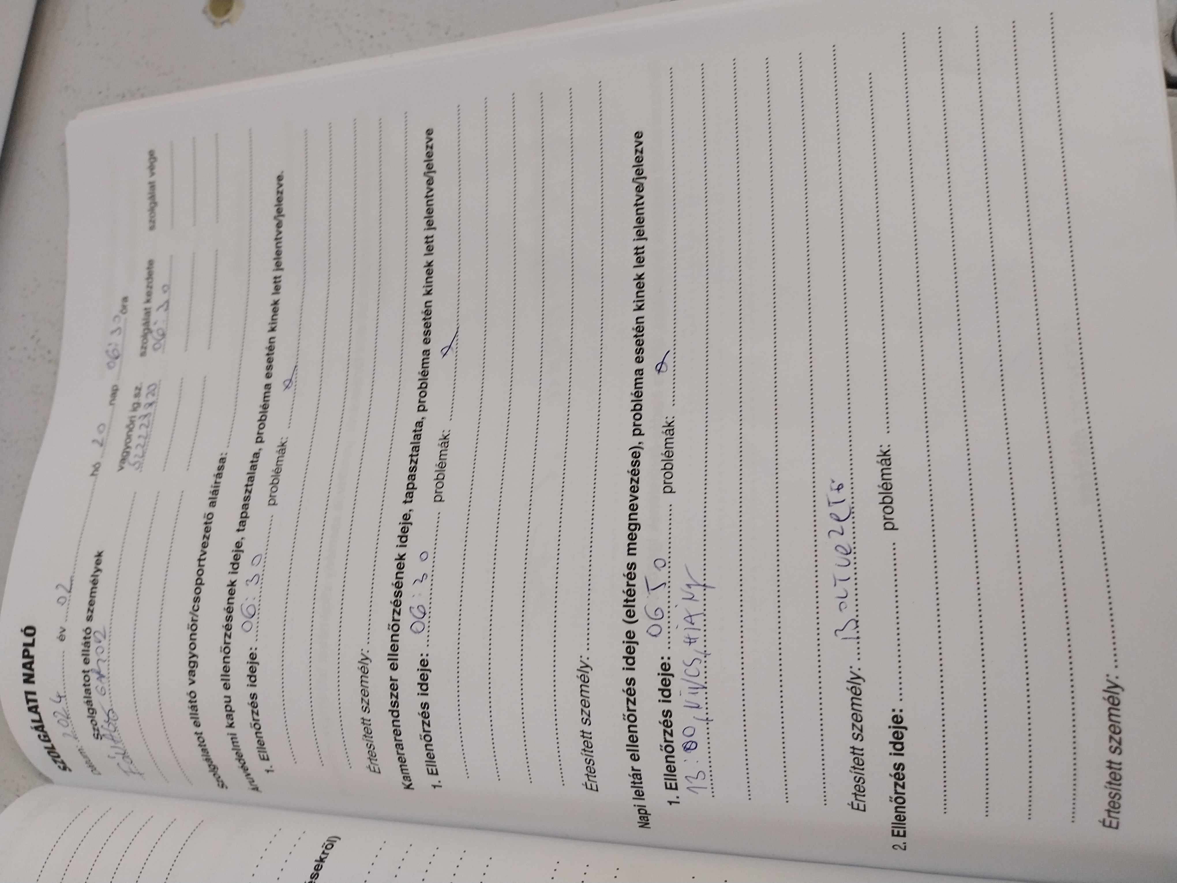 | Az őrzési helyre kiadott munkaeszközök megléte | Megfelel |