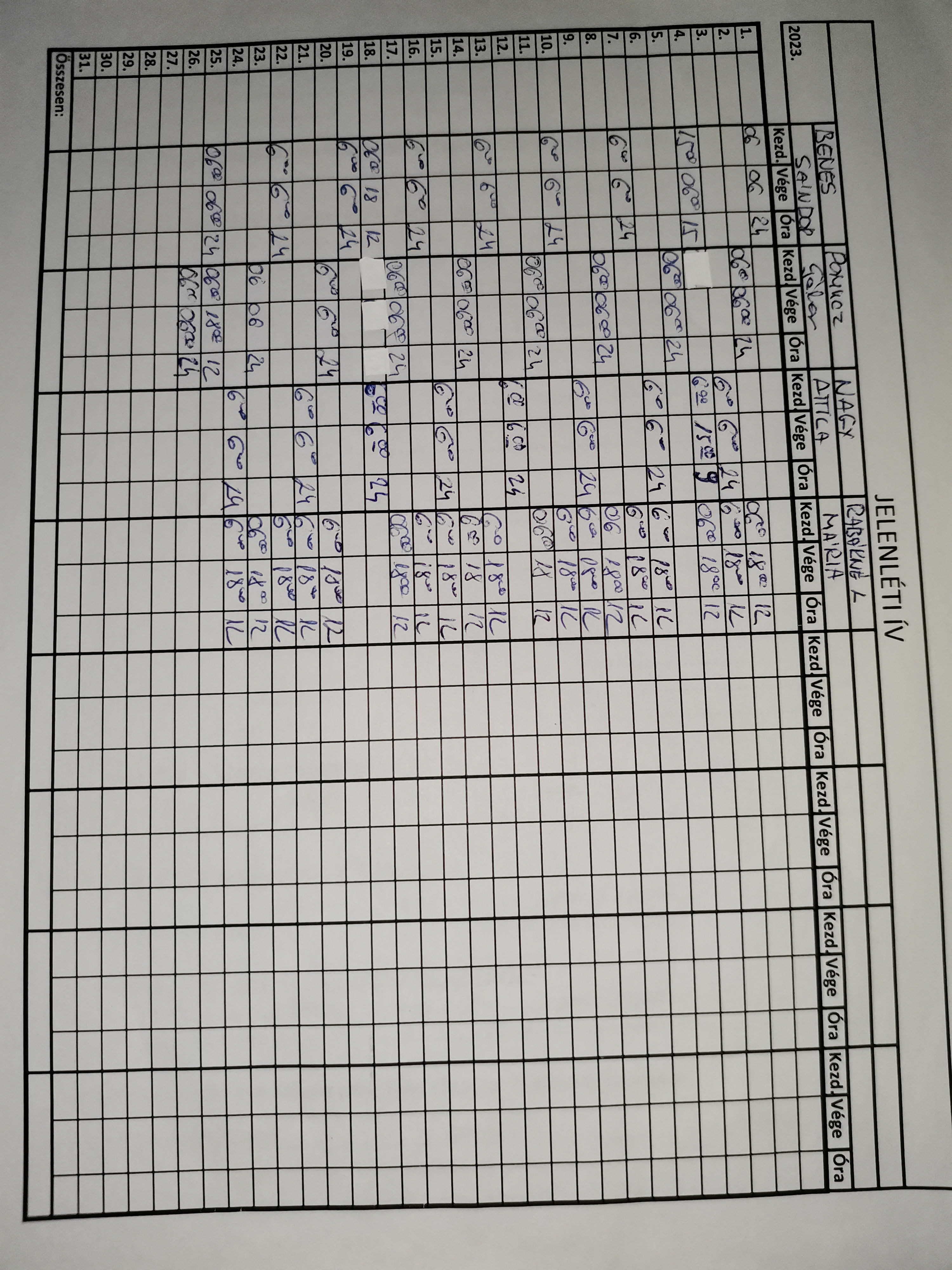 | A munkaidő nyilvántartás (jelenléti ív) vezetése | Megfelel |