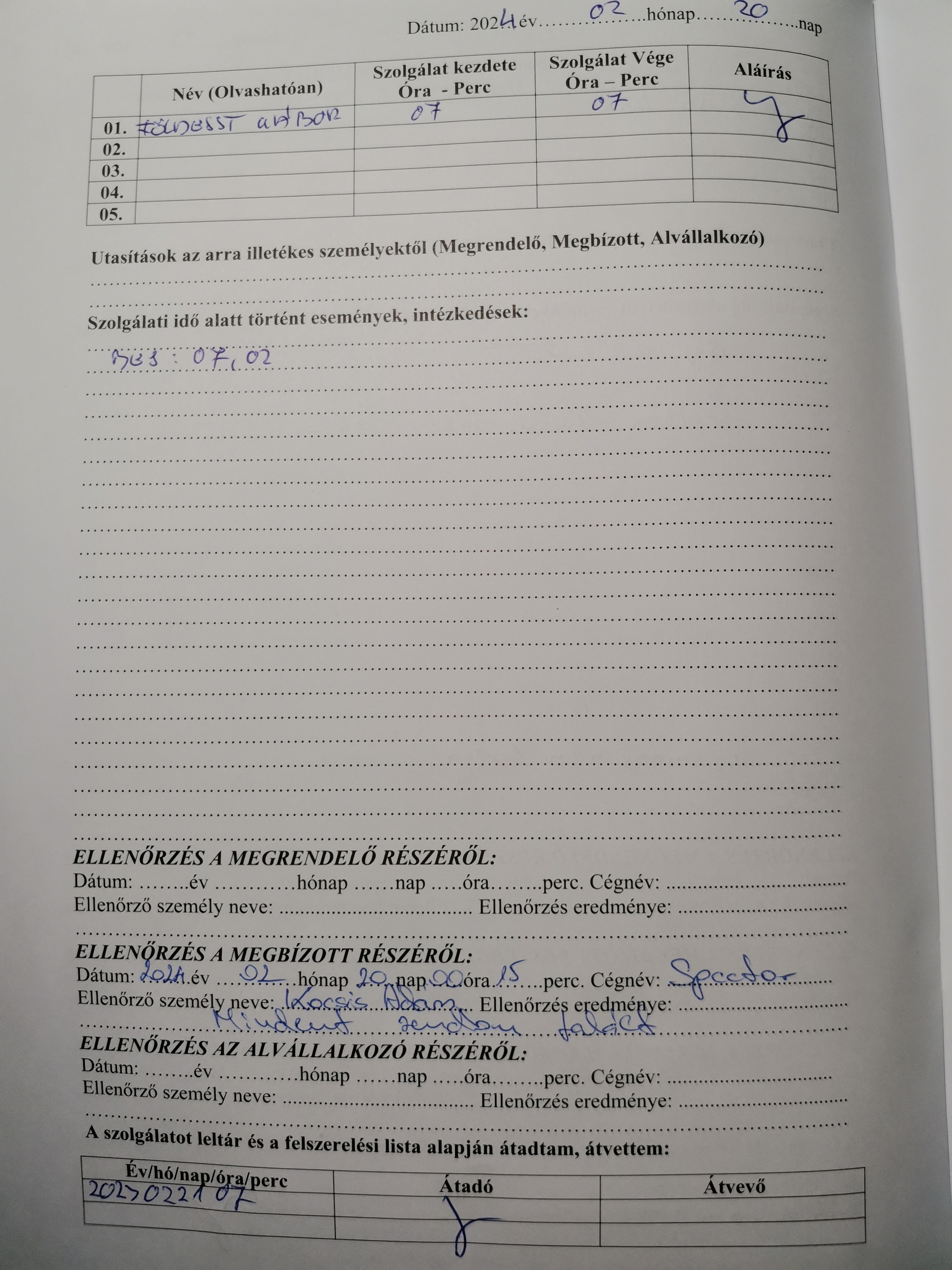 | Van-e az ellenőrzött személynek egyéb észrevétele, javaslata? | Nem |