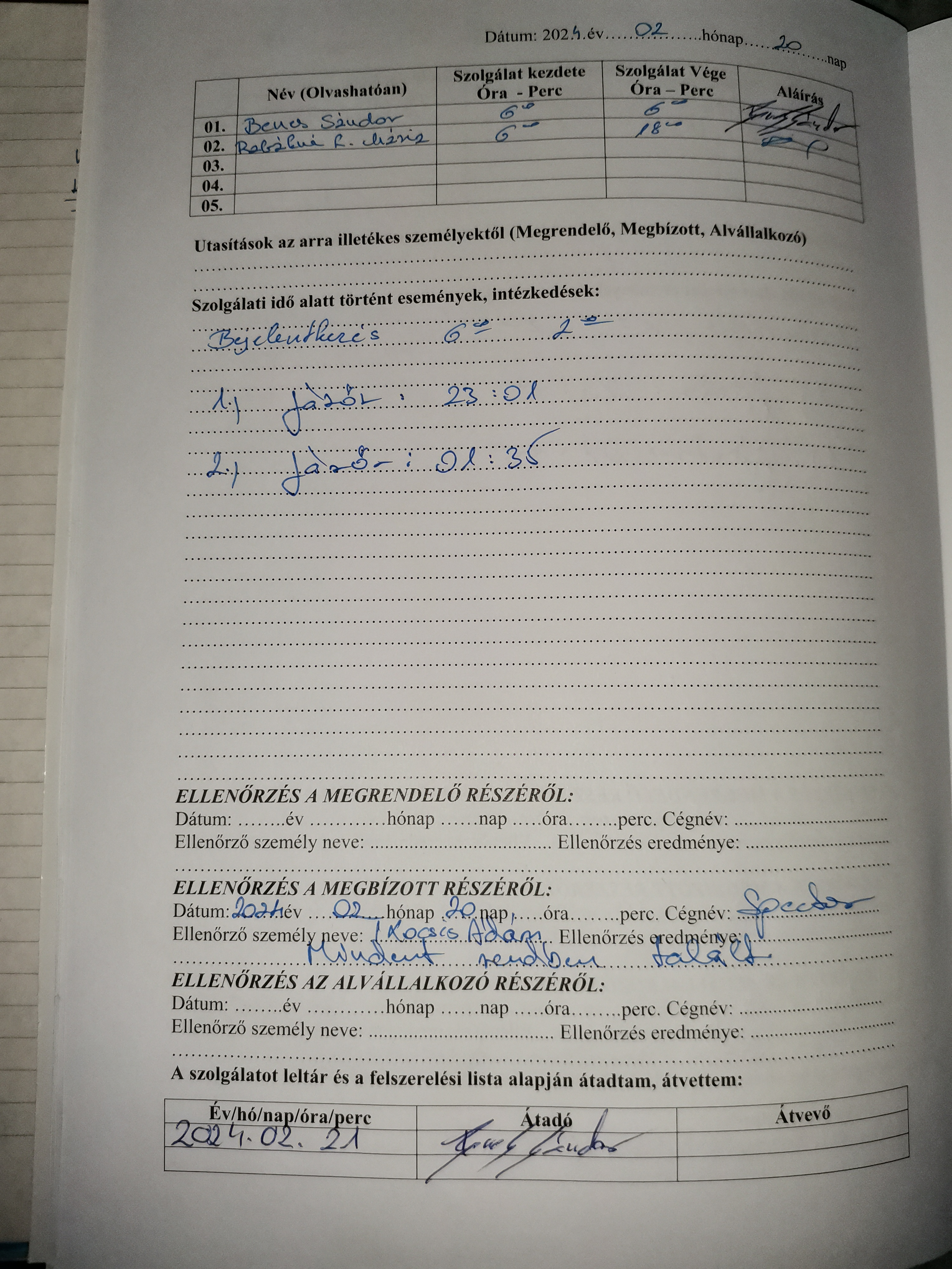 | Az ellenőrzött személy neve | Benes Sándor |