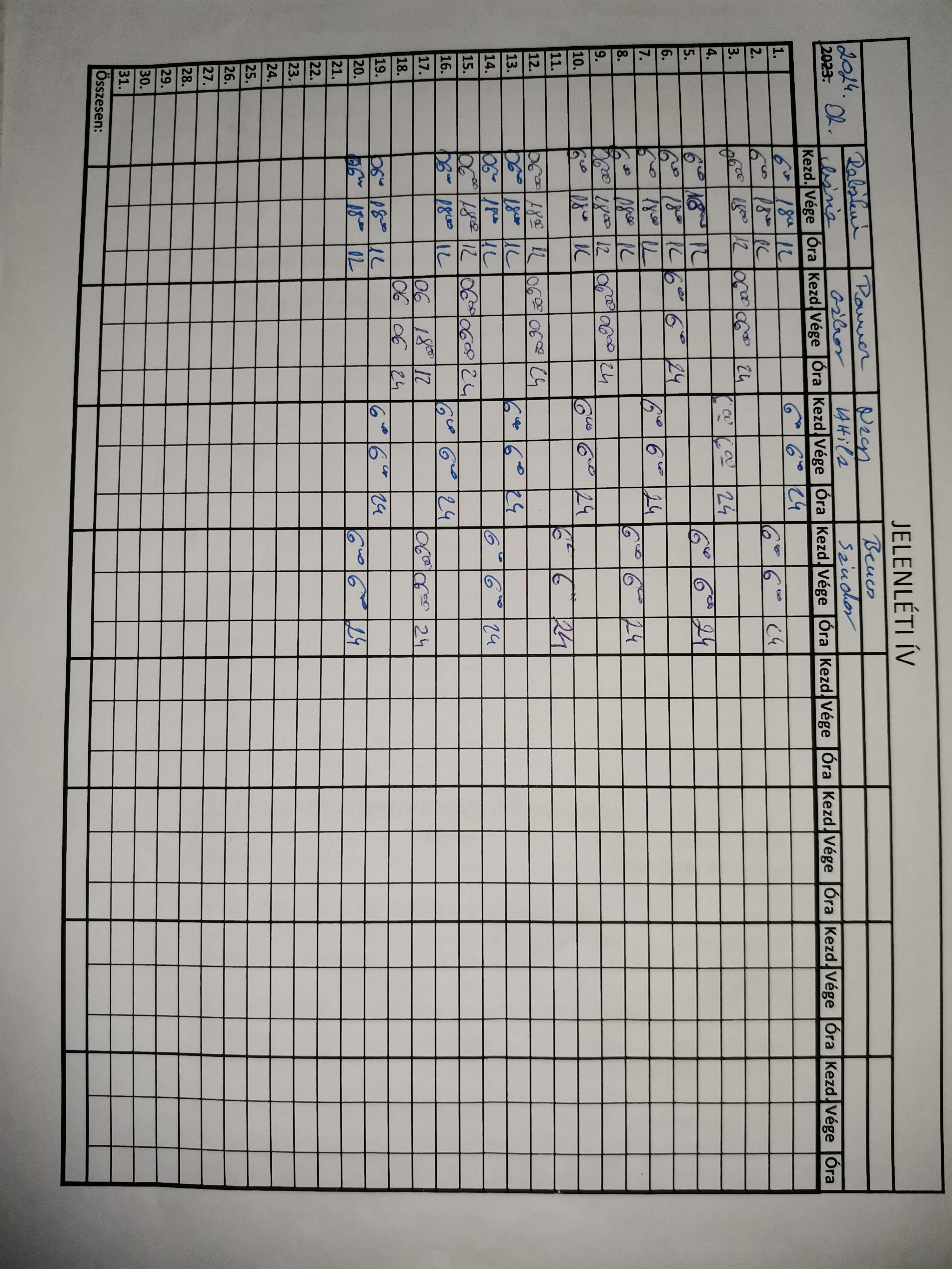 | A munkaidő nyilvántartás (jelenléti ív) vezetése | Megfelel |
