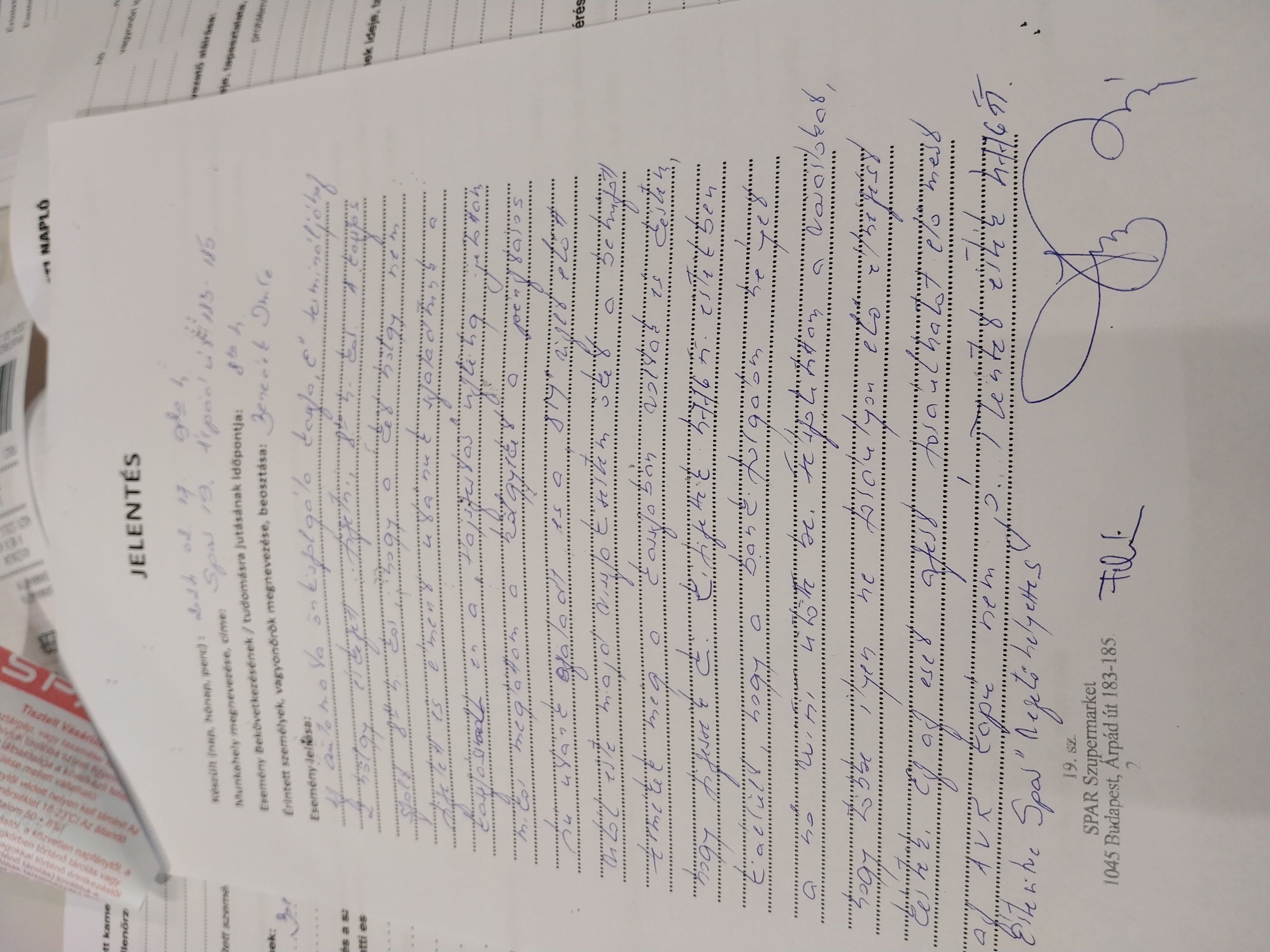 | Ellenőrzés helye | SPAR-SM 19 - Budapest IV. Árpád u. 183. |