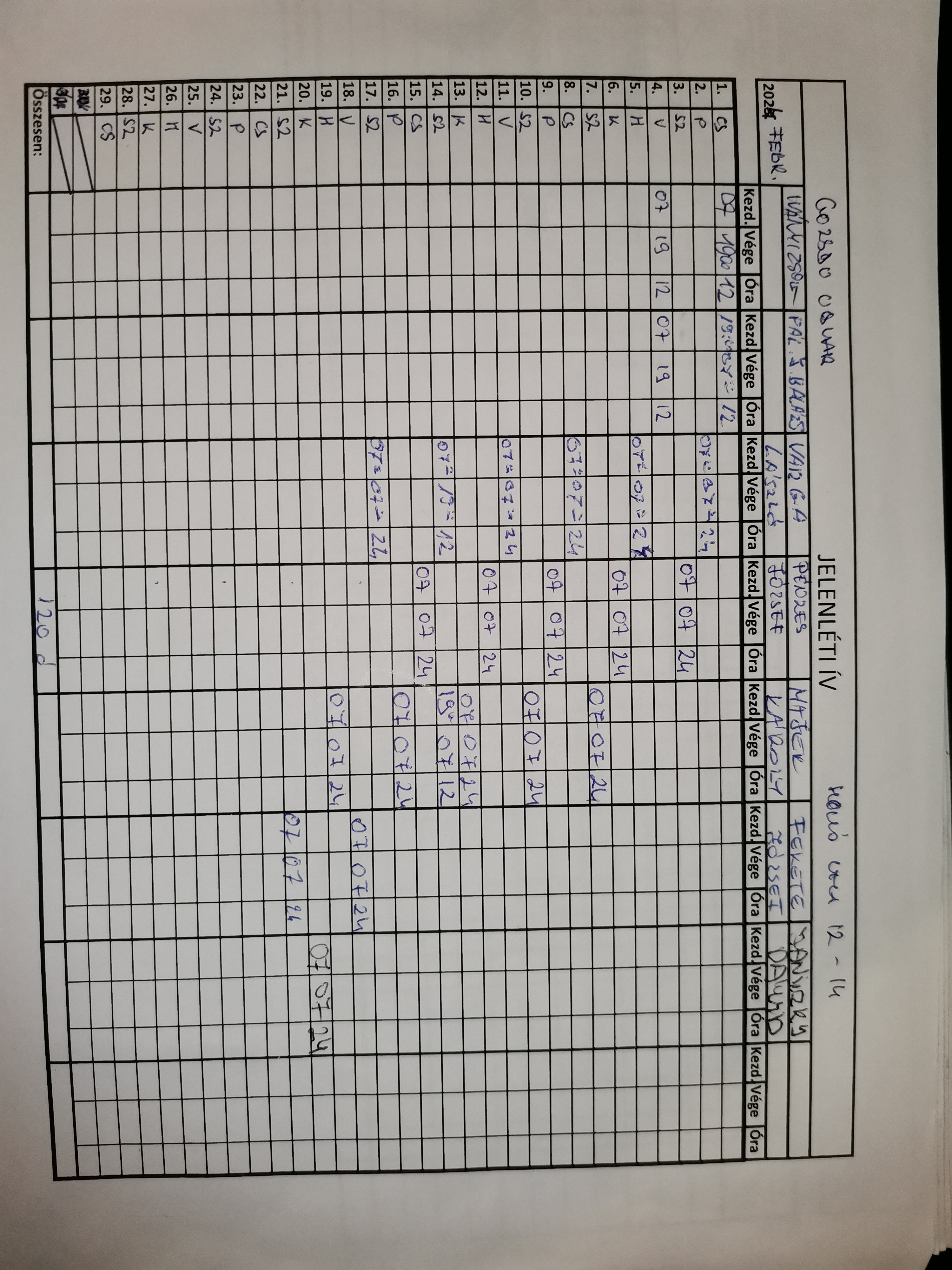 | A munkaidő nyilvántartás (jelenléti ív) vezetése | Megfelel |