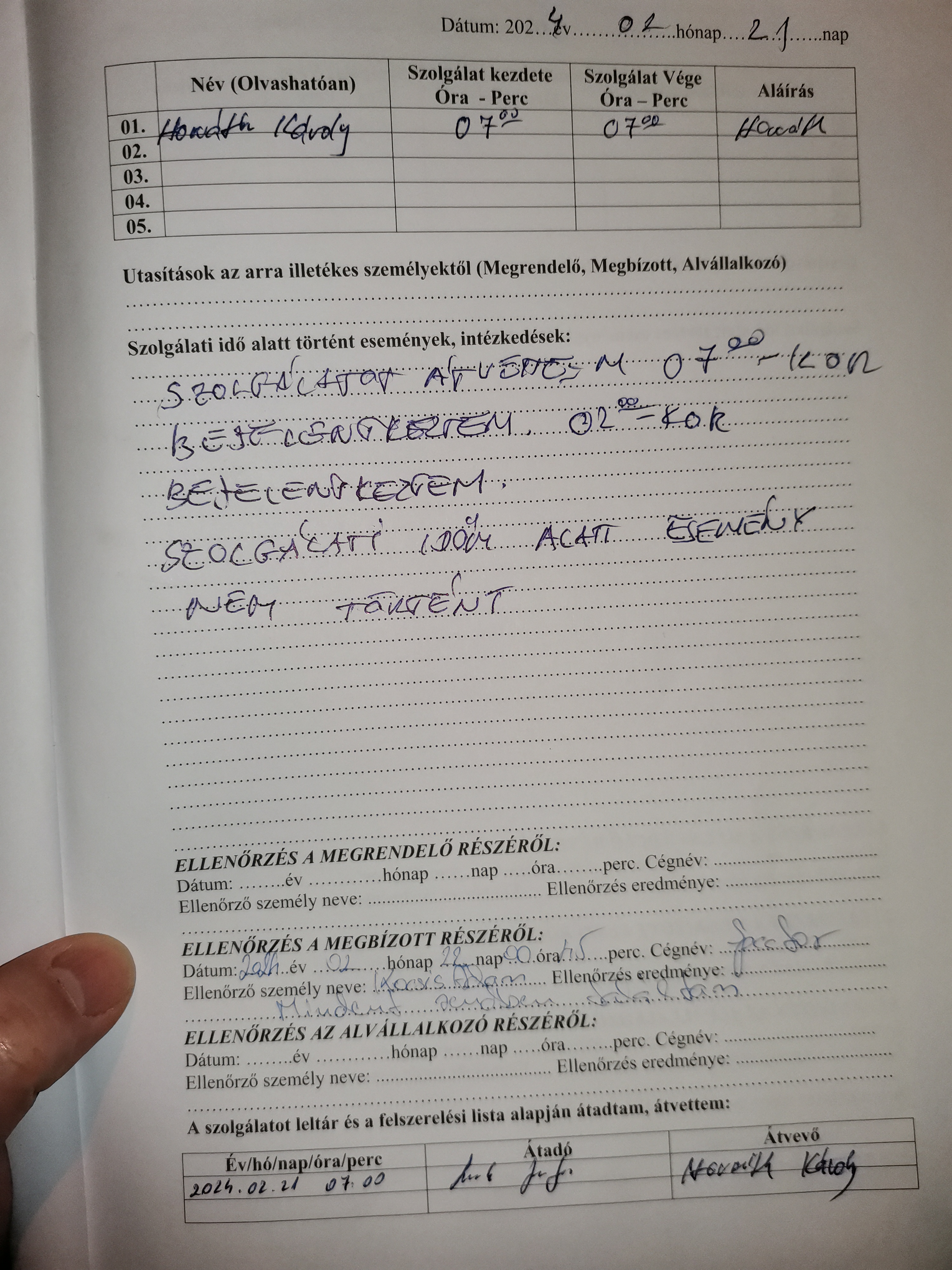 | Van-e az ellenőrzött személynek egyéb észrevétele, javaslata? | Nem |