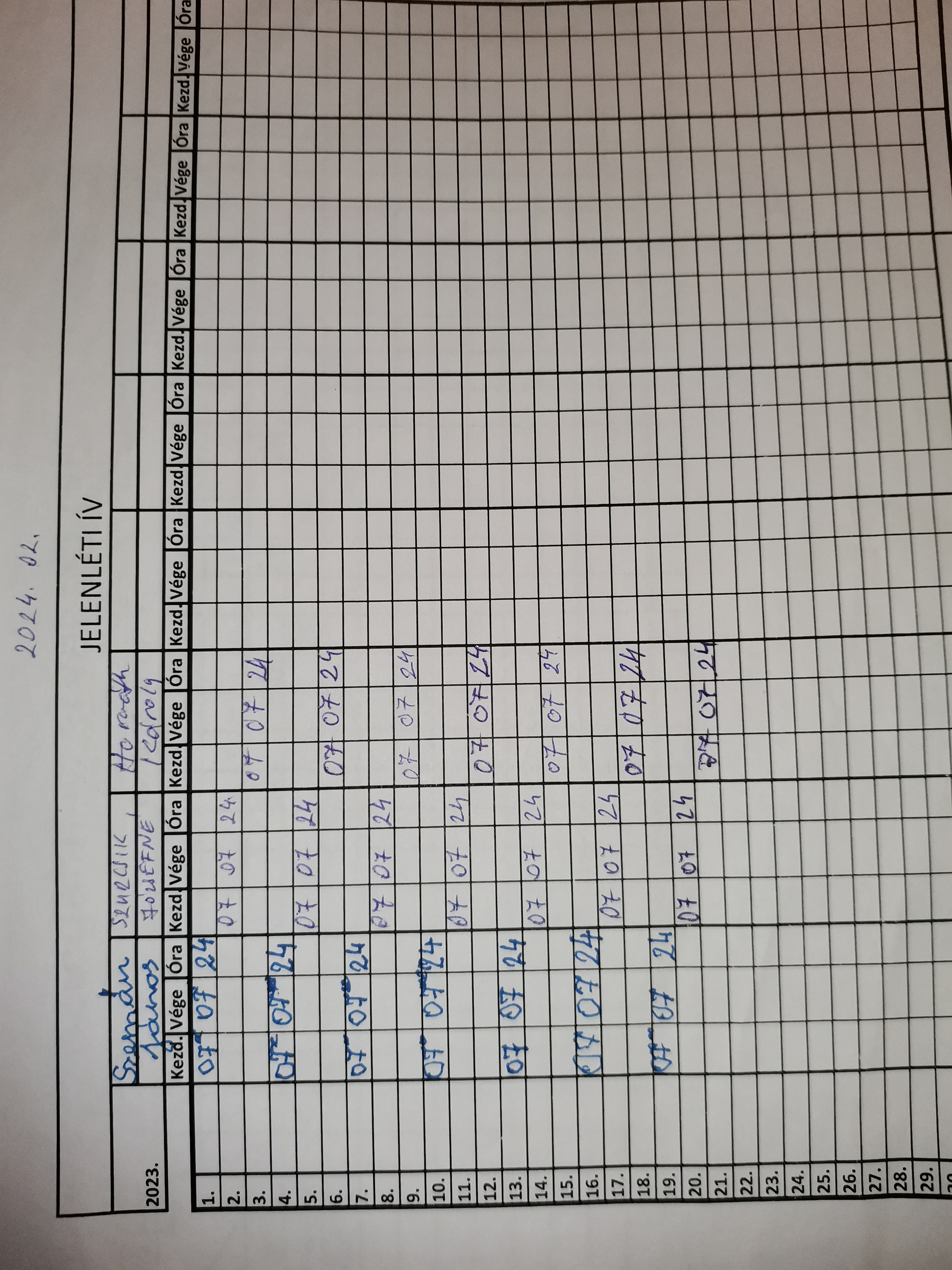 | A munkaidő nyilvántartás (jelenléti ív) vezetése | Megfelel |