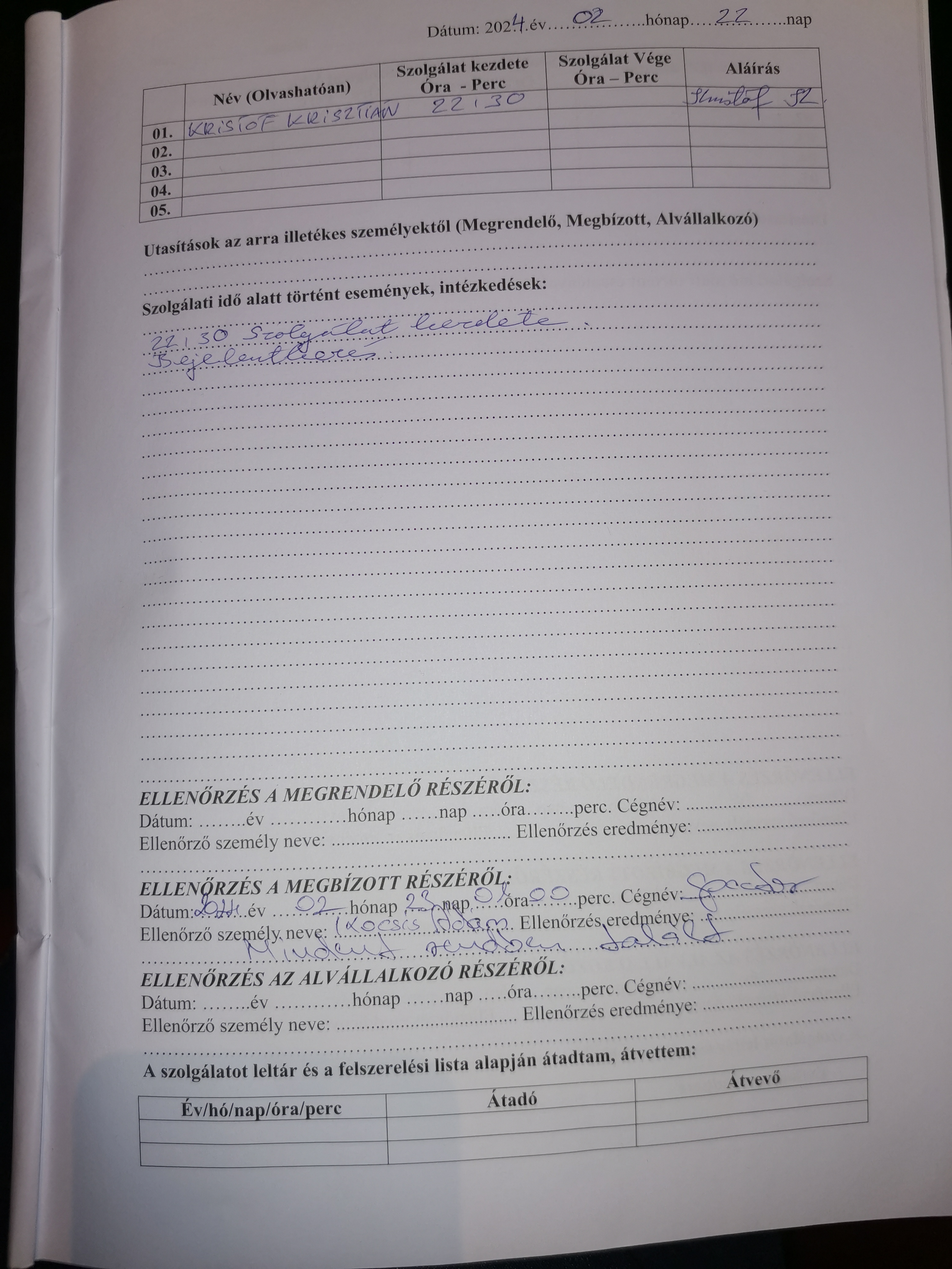 | Az ellenőrzött személy neve | Kristóf Krisztián |