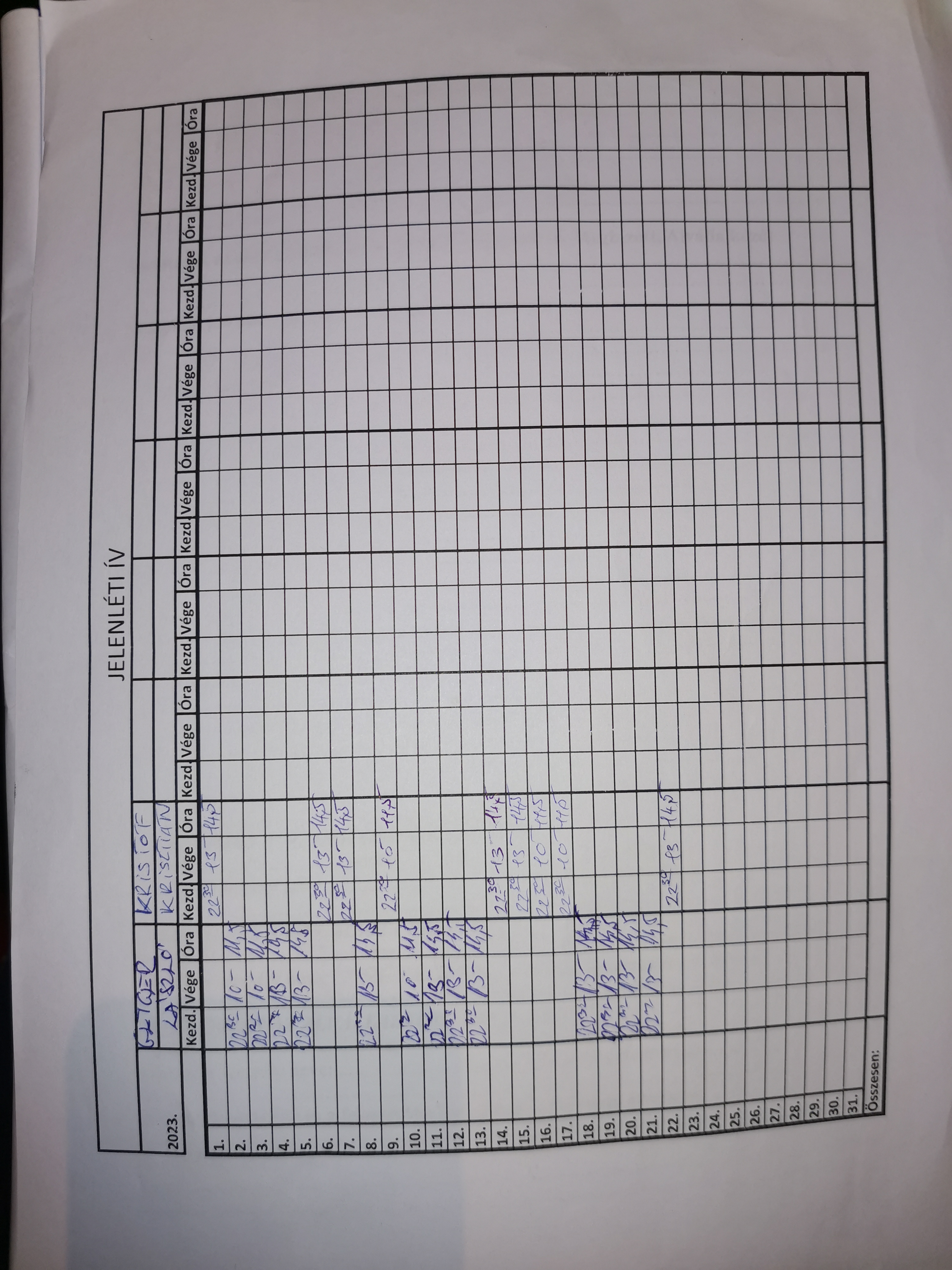 | A munkaidő nyilvántartás (jelenléti ív) vezetése | Megfelel |