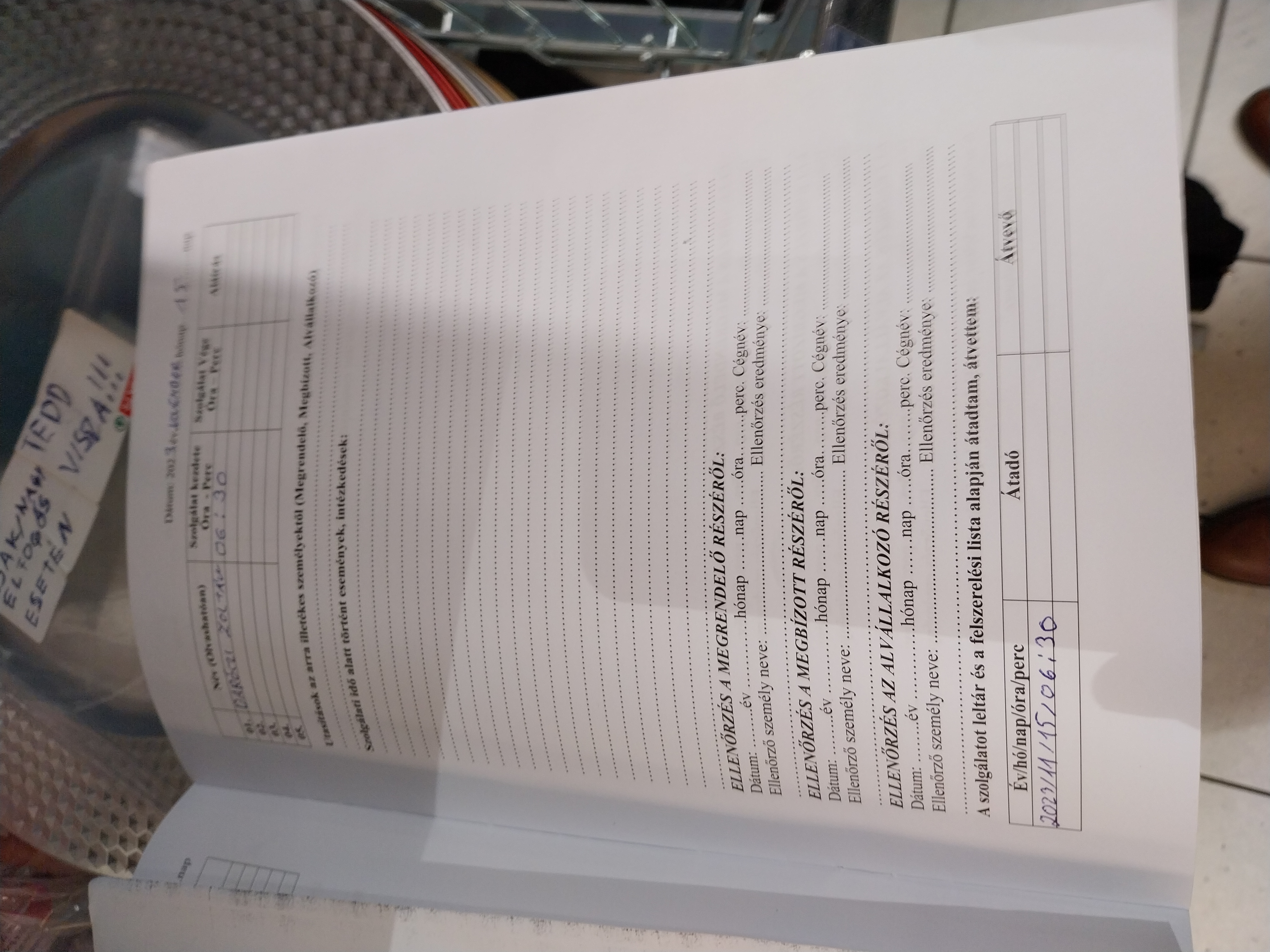 | Az őrzési helyre kiadott munkaeszközök megléte | Megfelel |