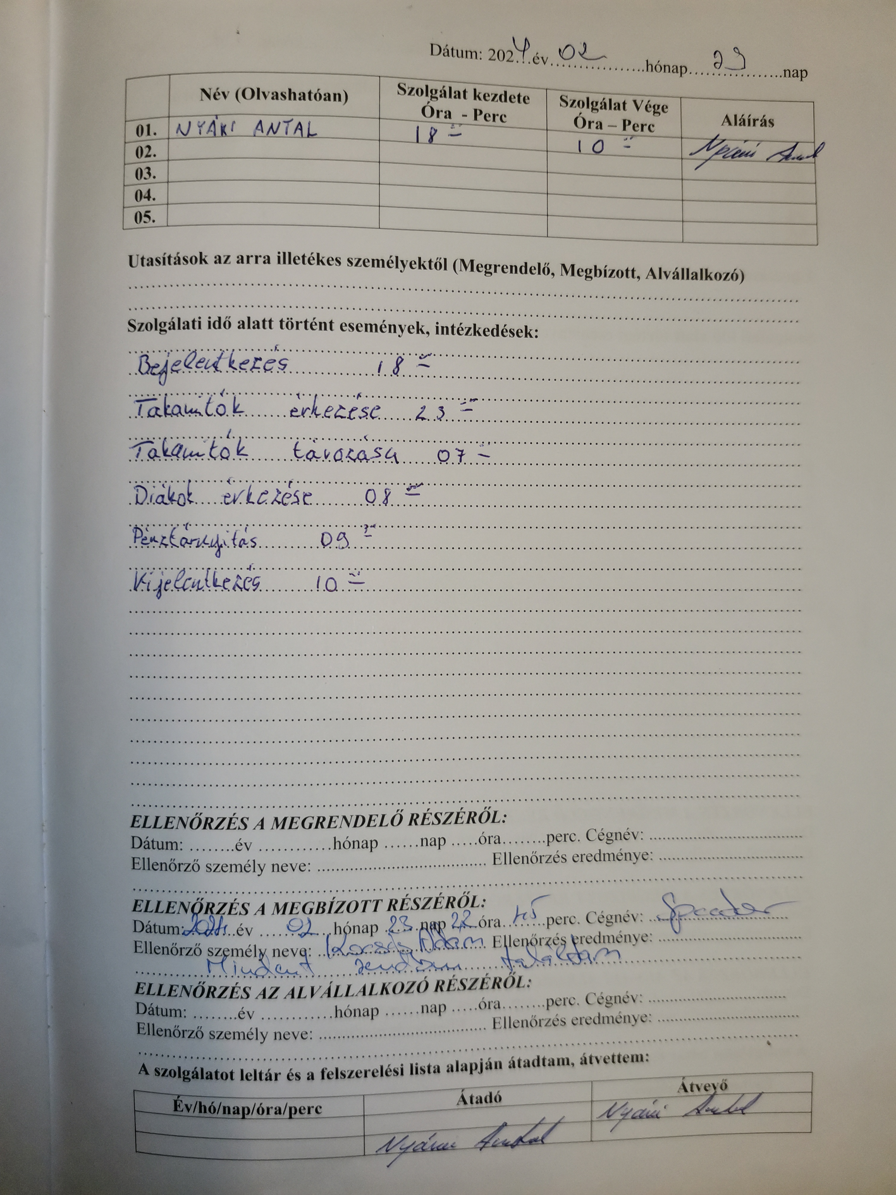| Az ellenőrzött személy neve | Nyári Antal |