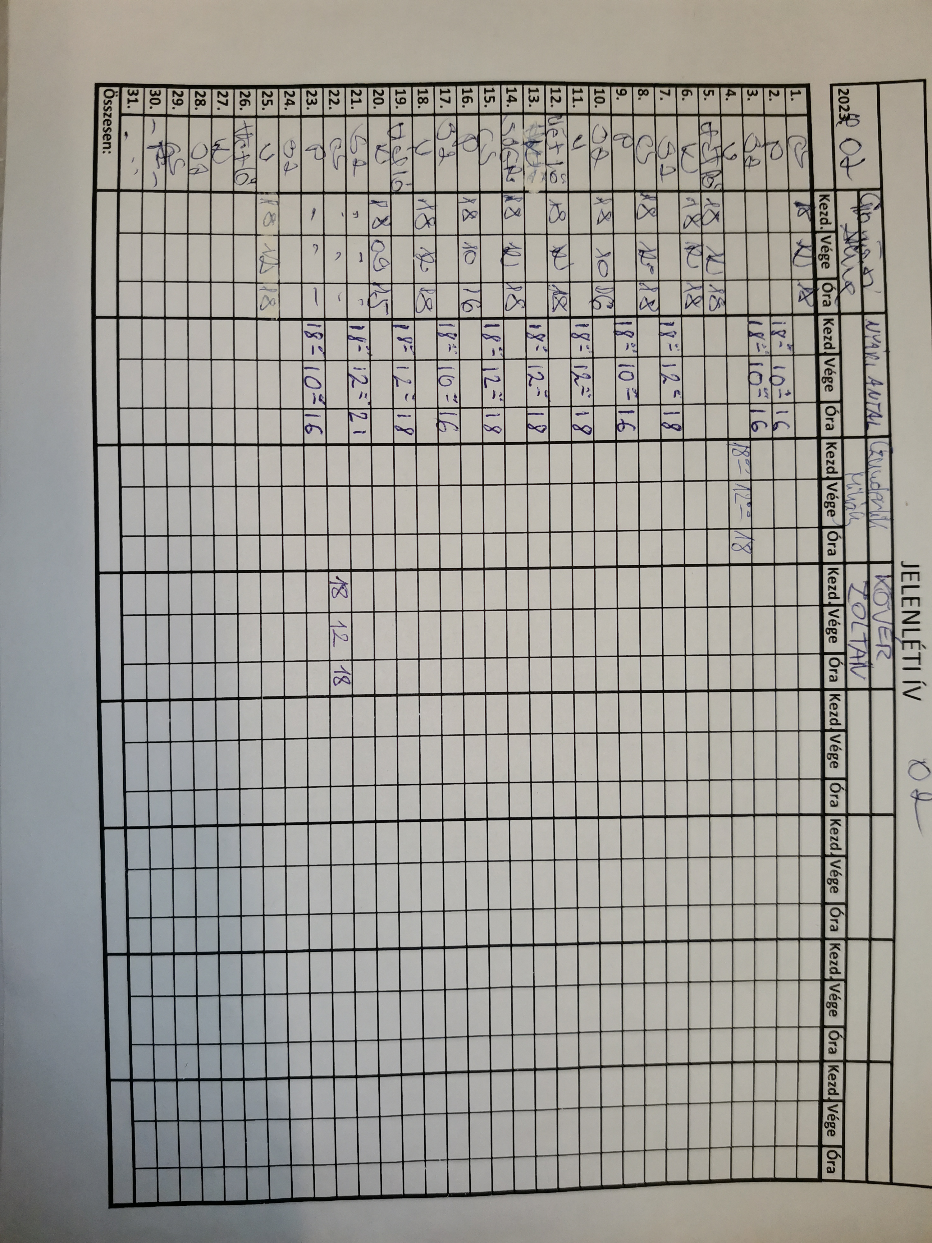 | A munkaidő nyilvántartás (jelenléti ív) vezetése | Megfelel |