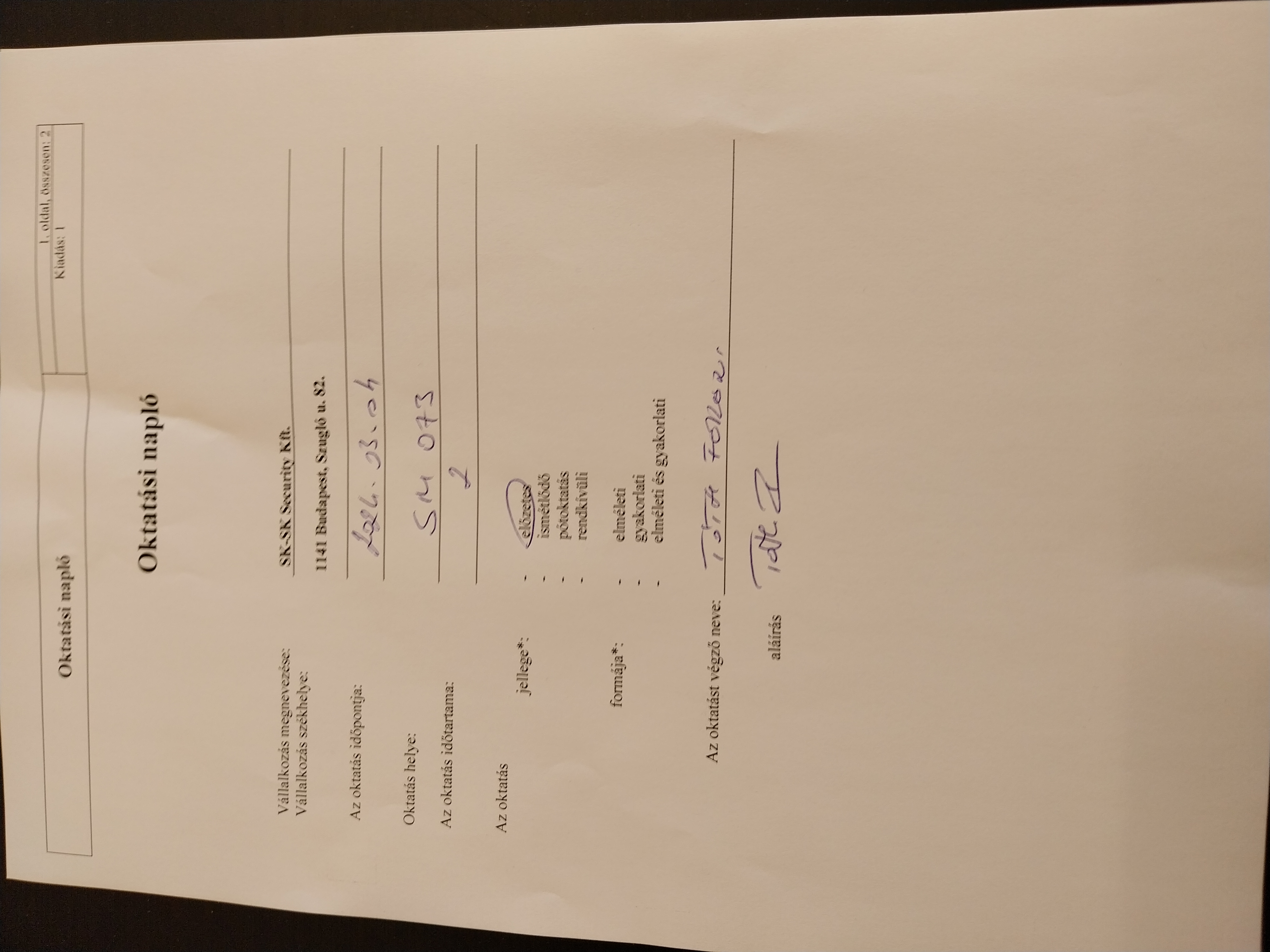| Történt az ellenőrzéshez kapcsolódóan oktatás? | Igen |