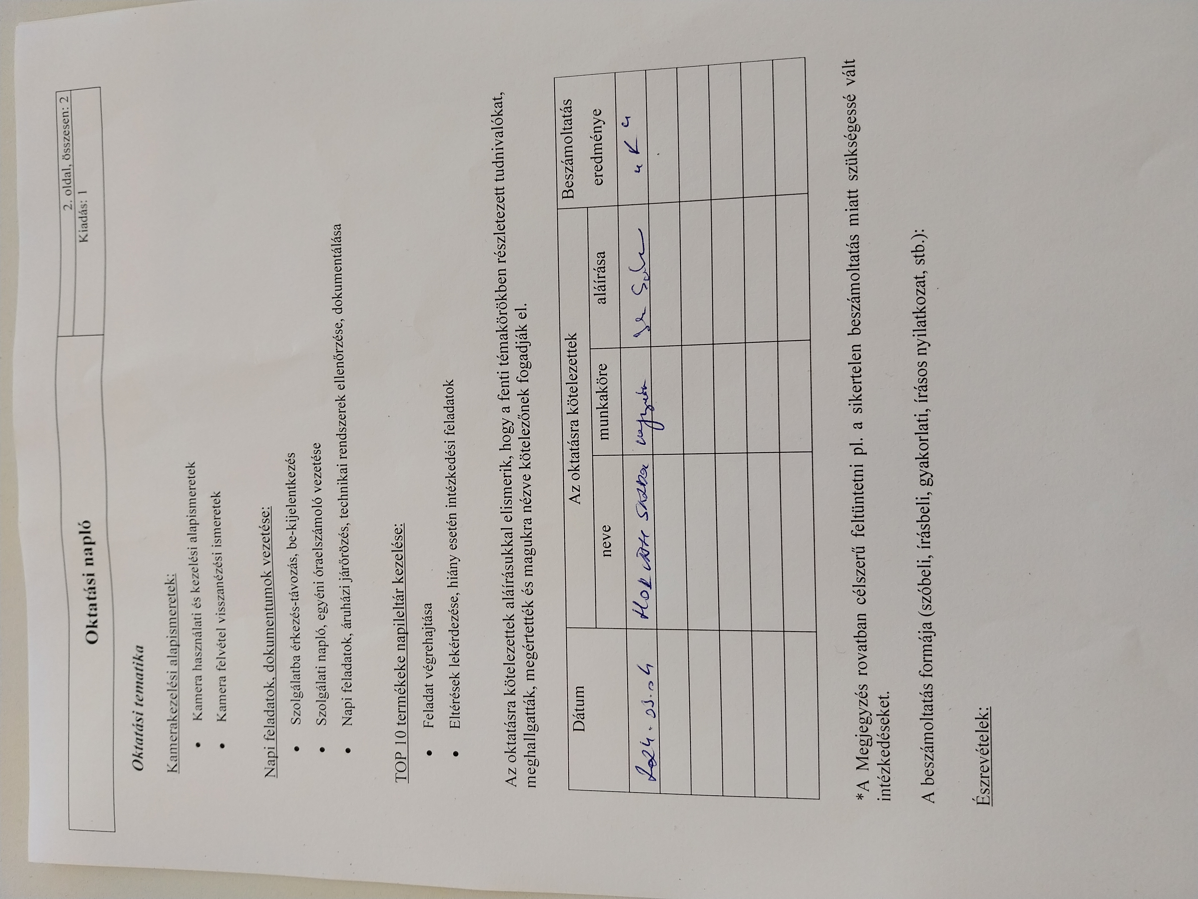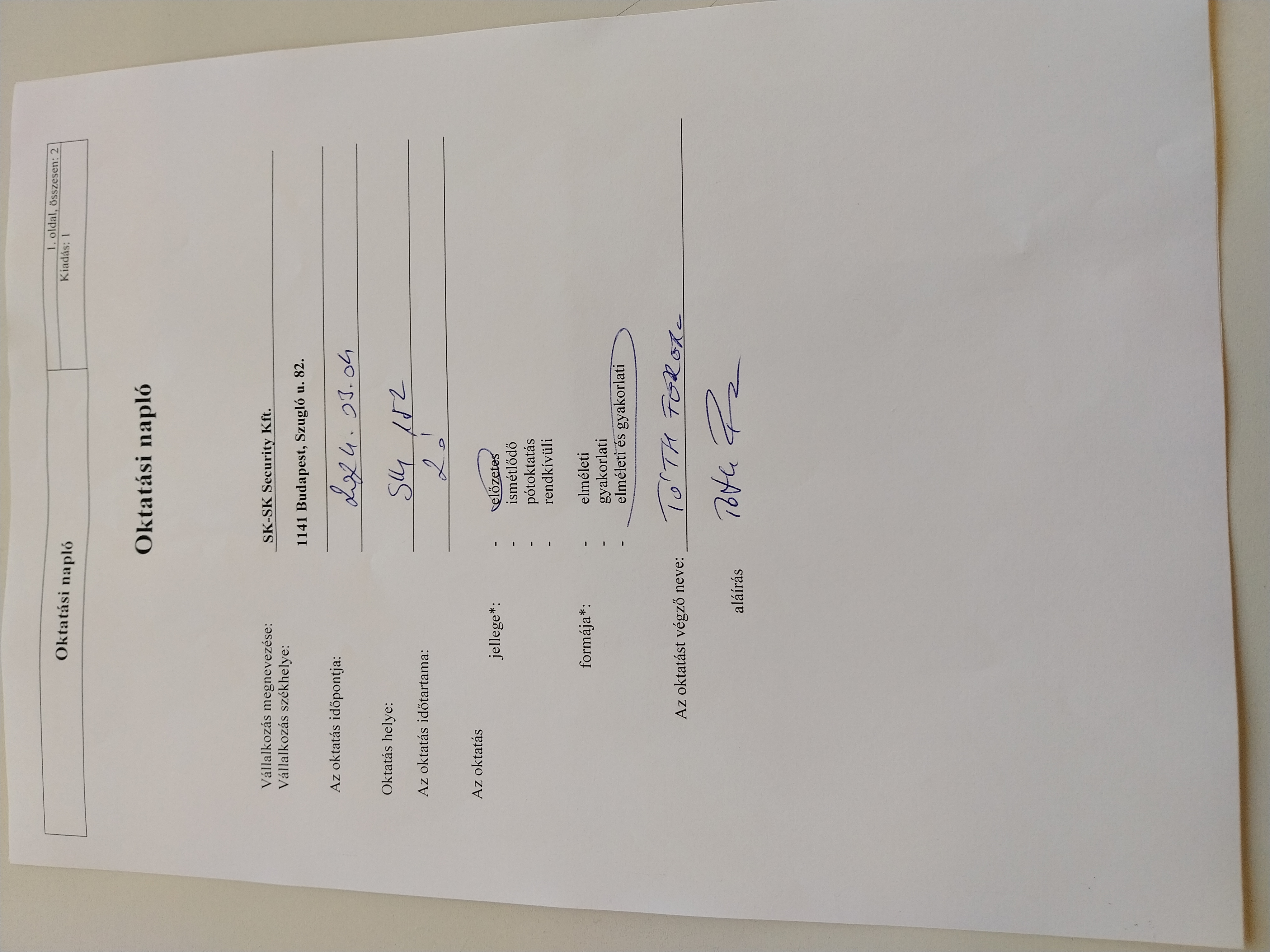 | Történt az ellenőrzéshez kapcsolódóan oktatás? | Nem |