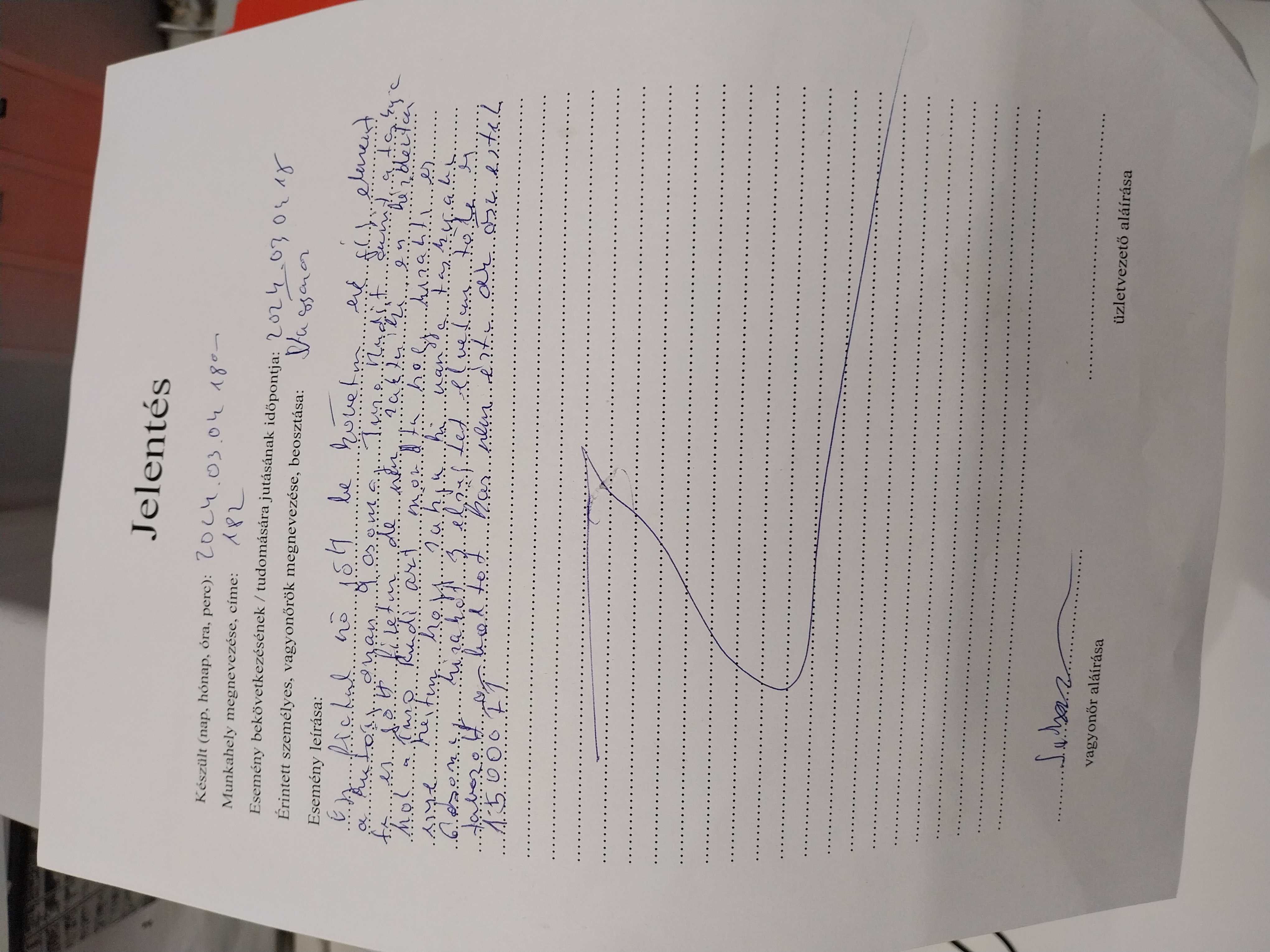 | Alkoholszondás ellenőrzés történt? | Nem |