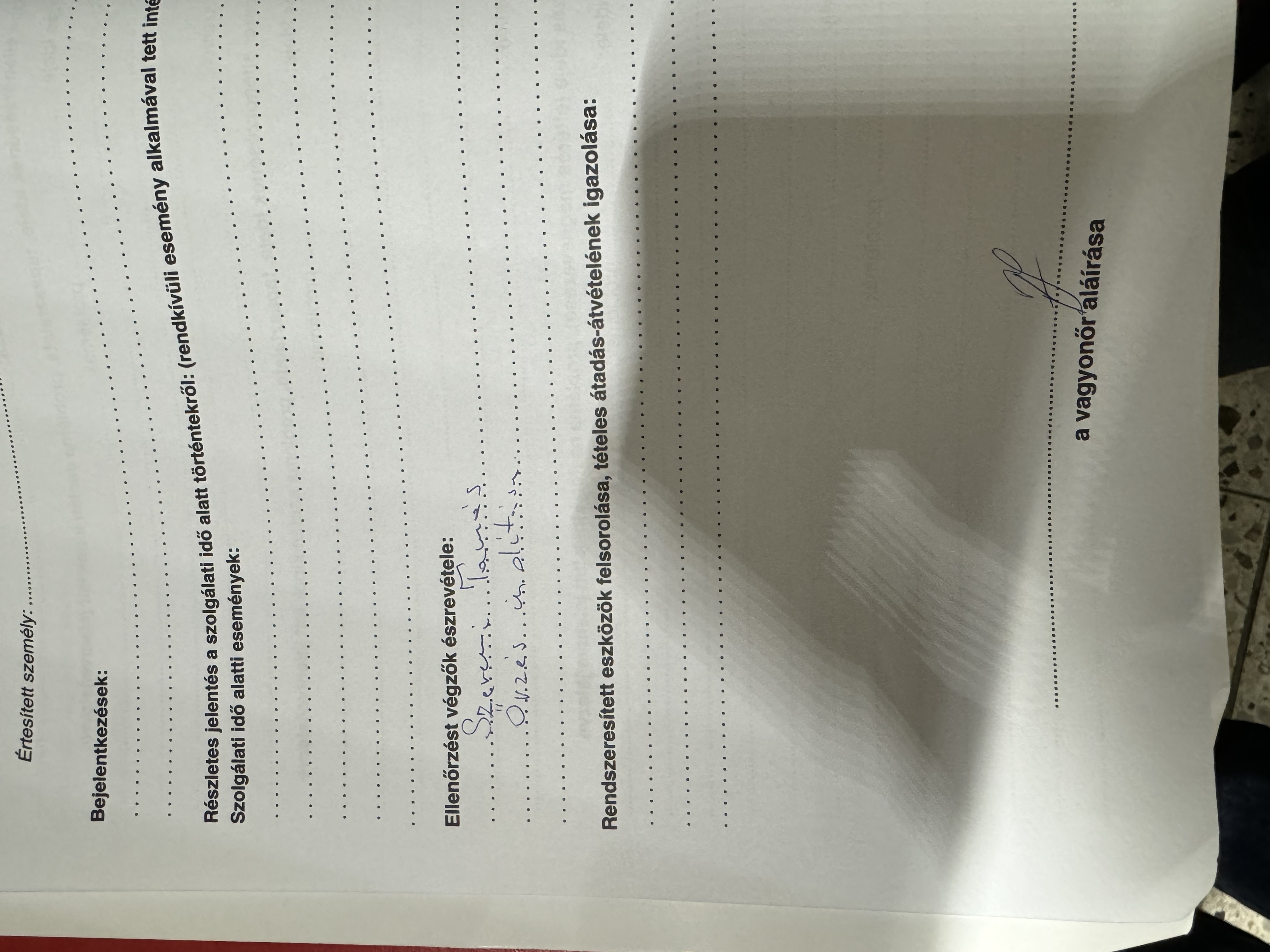 | Az őrzési helyre kiadott munkaeszközök megléte | Megfelel |