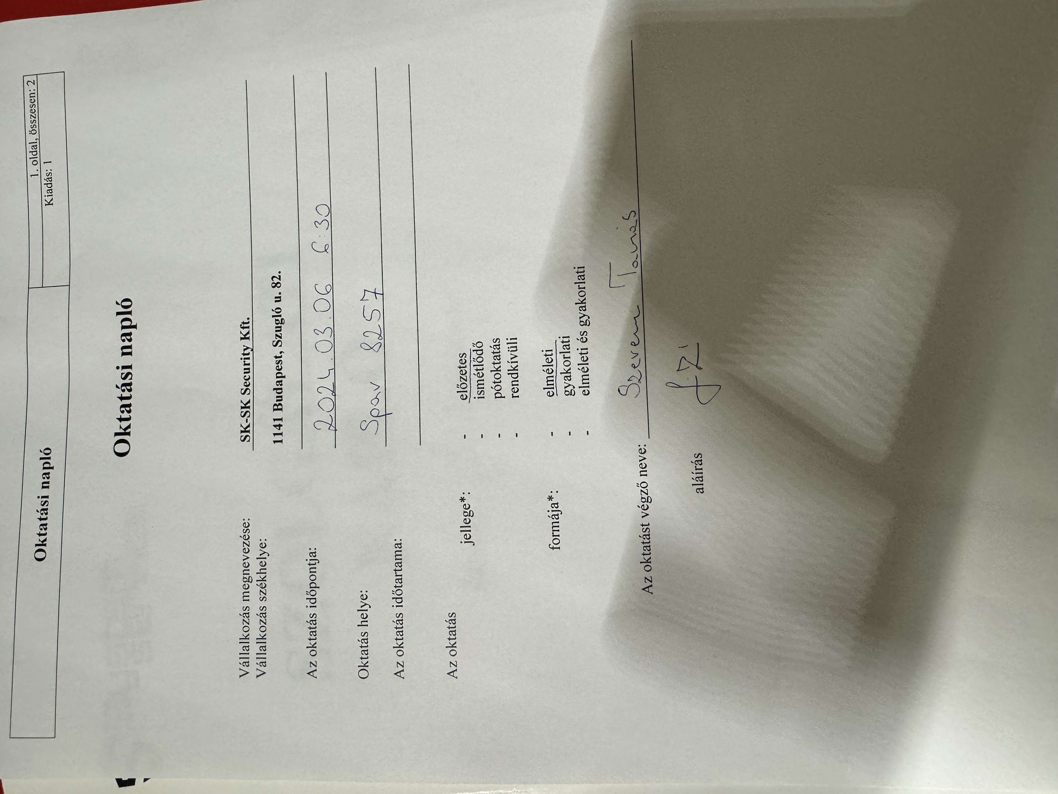 | Történt az ellenőrzéshez kapcsolódóan oktatás? | Nem |