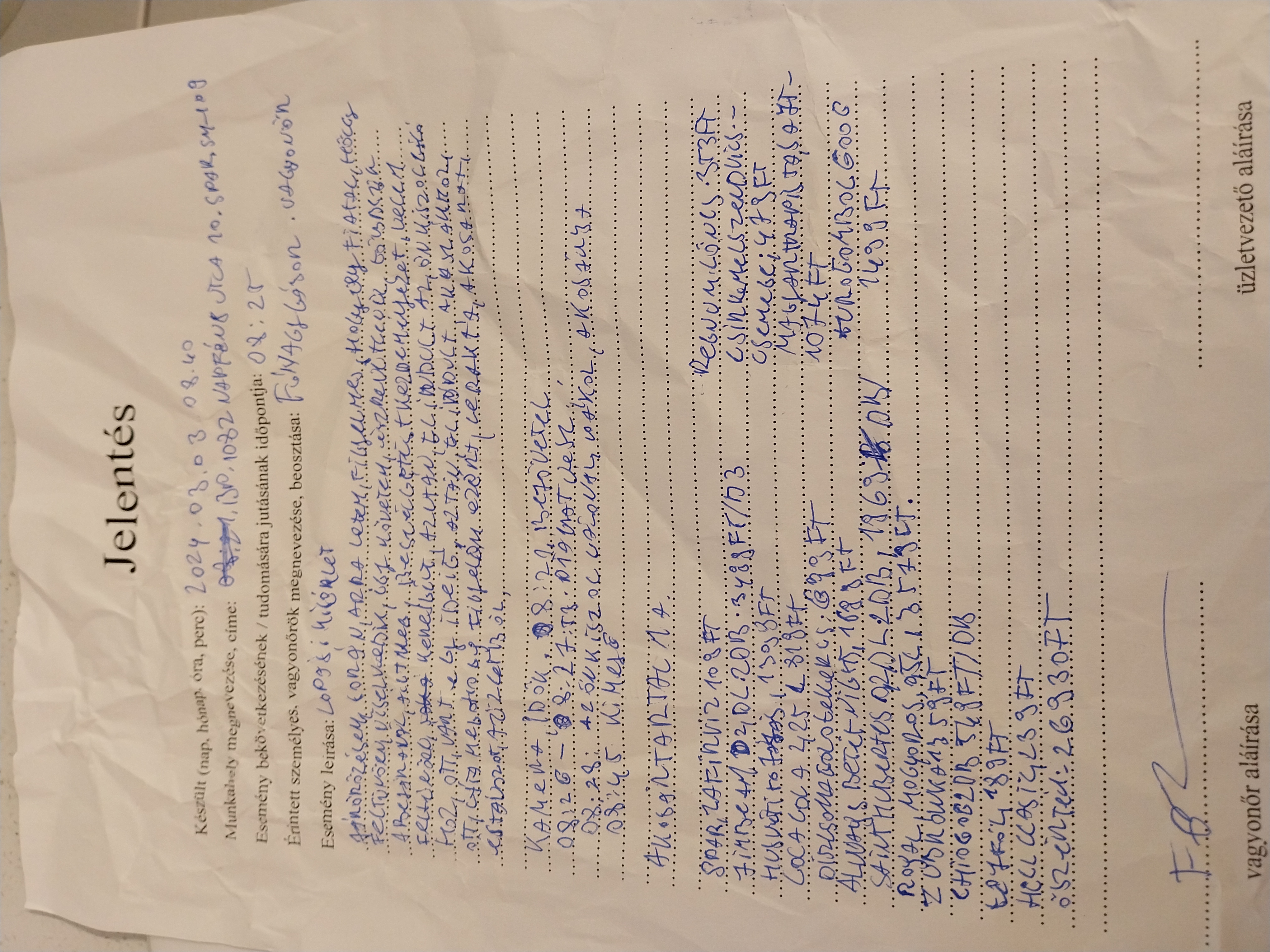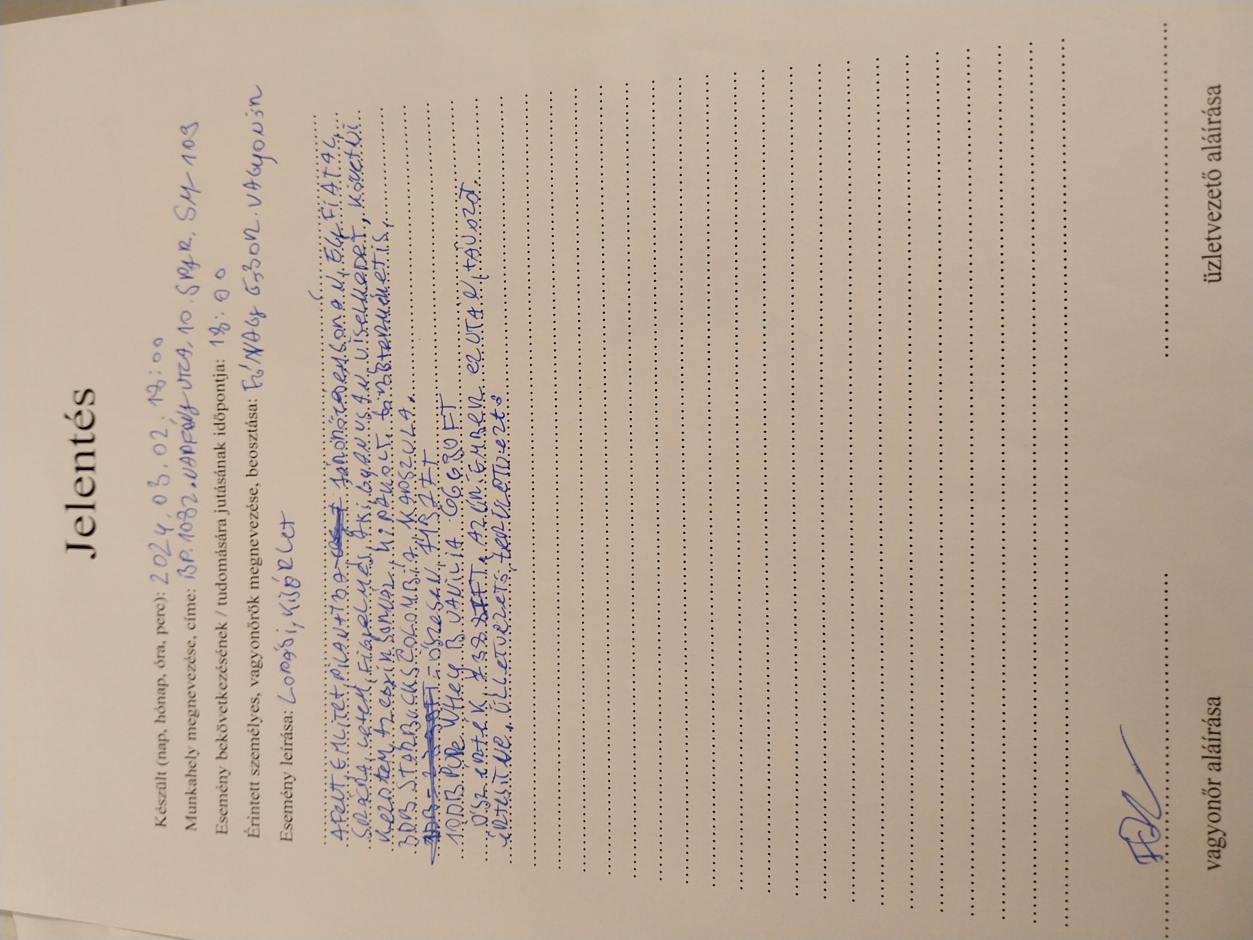 | Alkoholszondás ellenőrzés történt? | Nem |