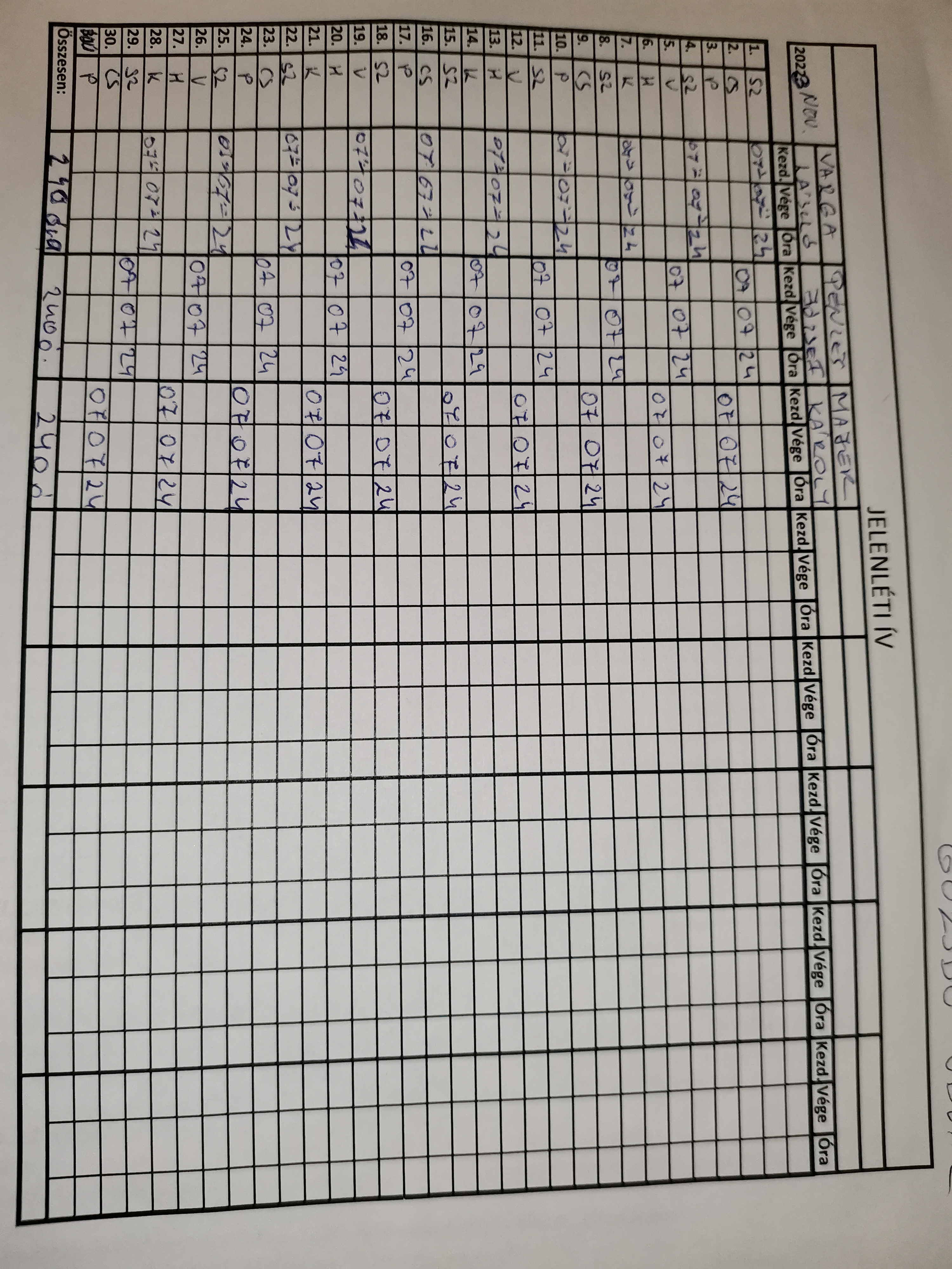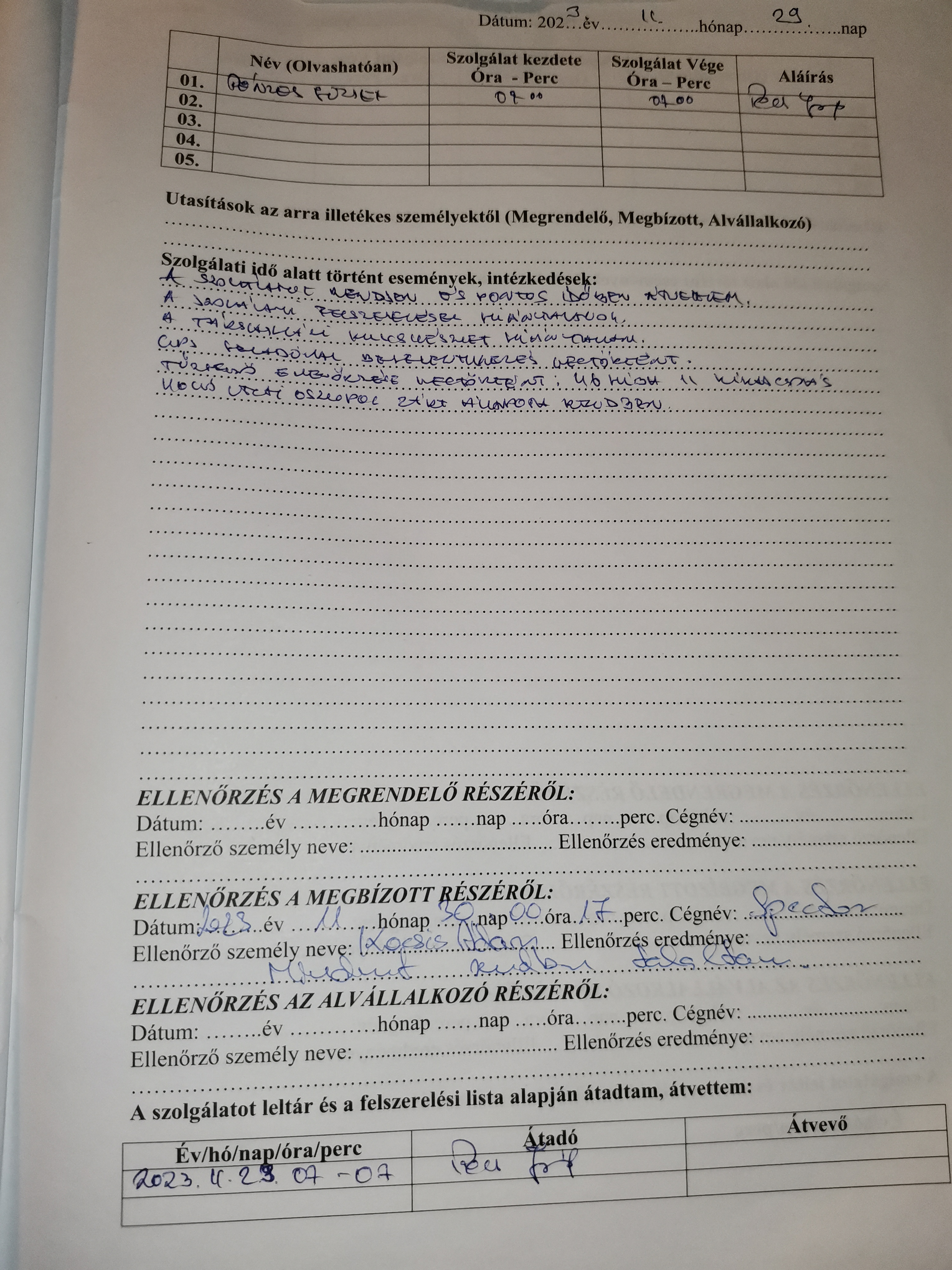 | Szolgálati okmányok nemmegfelelősége | A hó végi zárás miatt előre kitöltött. |