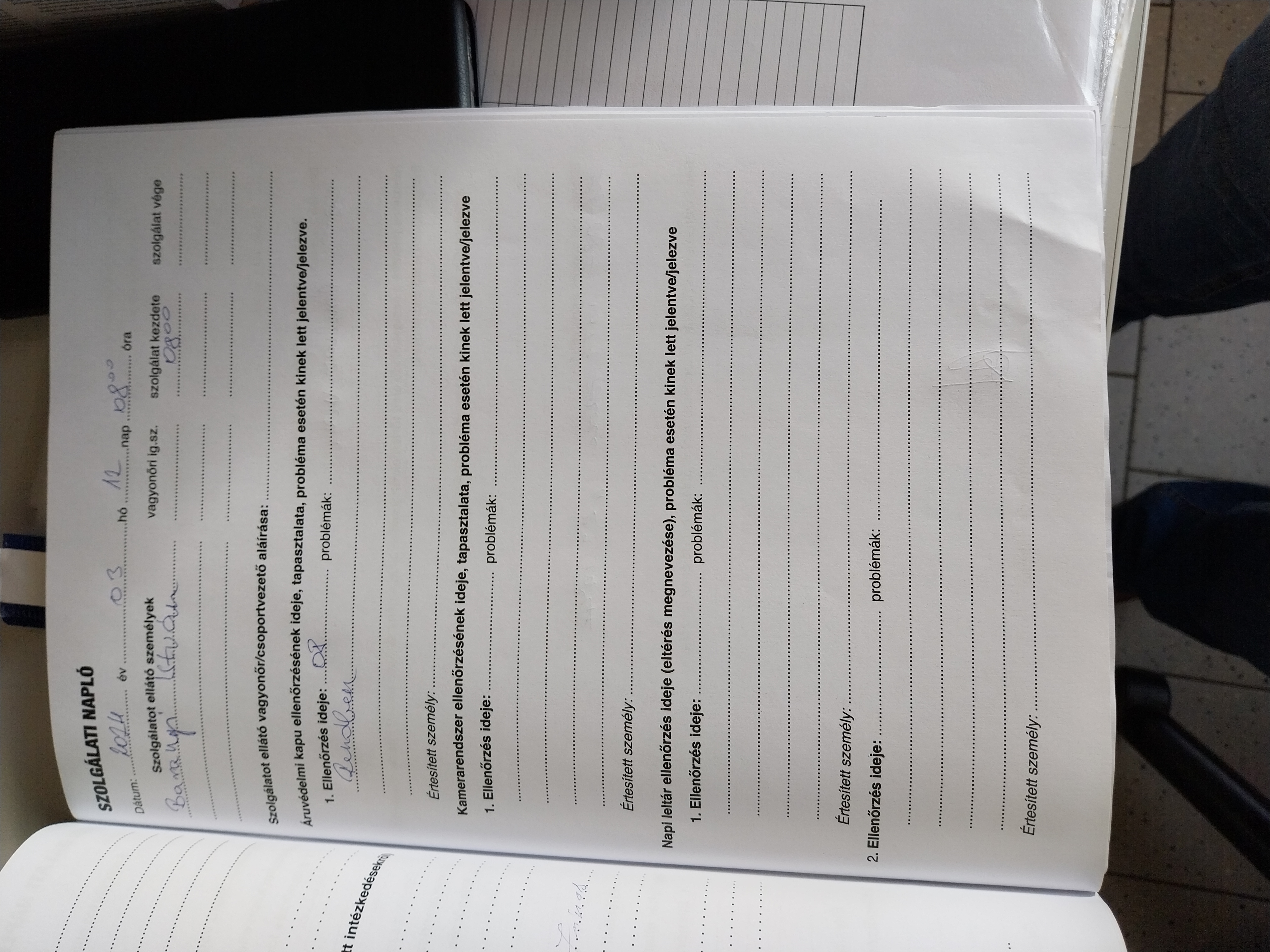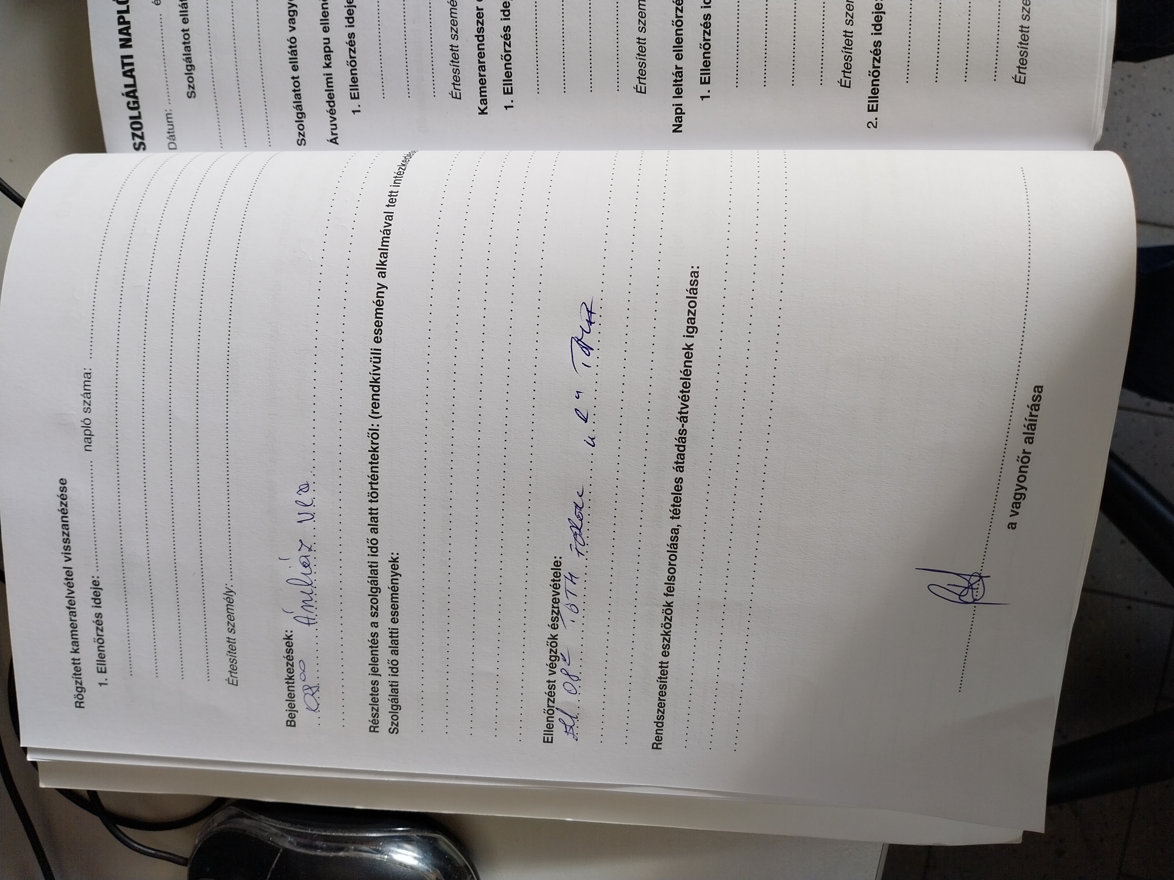 | Az őrzési helyre kiadott munkaeszközök megléte | Megfelel |