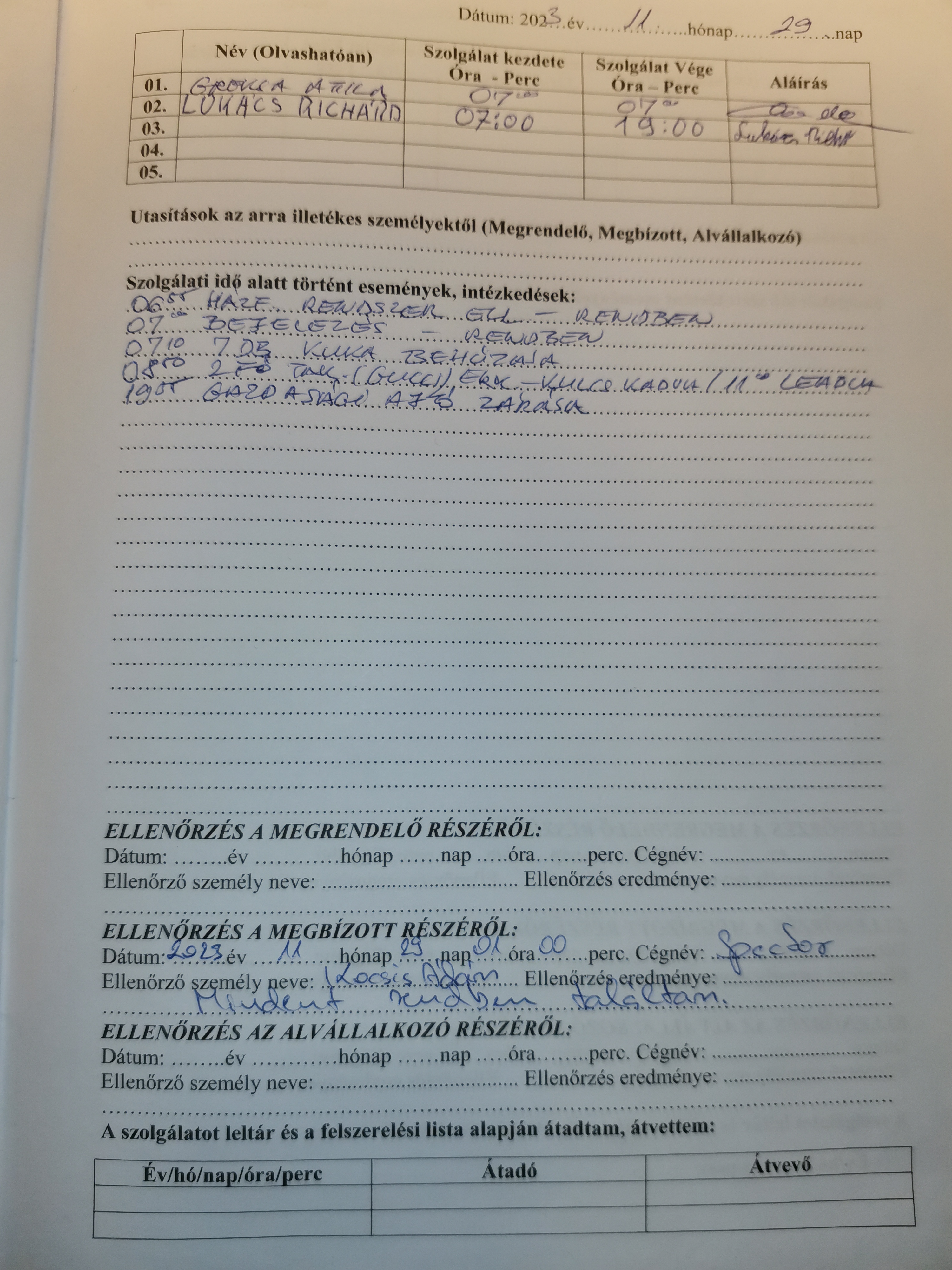 | Az őrhelyre kötelezően előírt oktatások igazolásának megléte | Nem releváns |