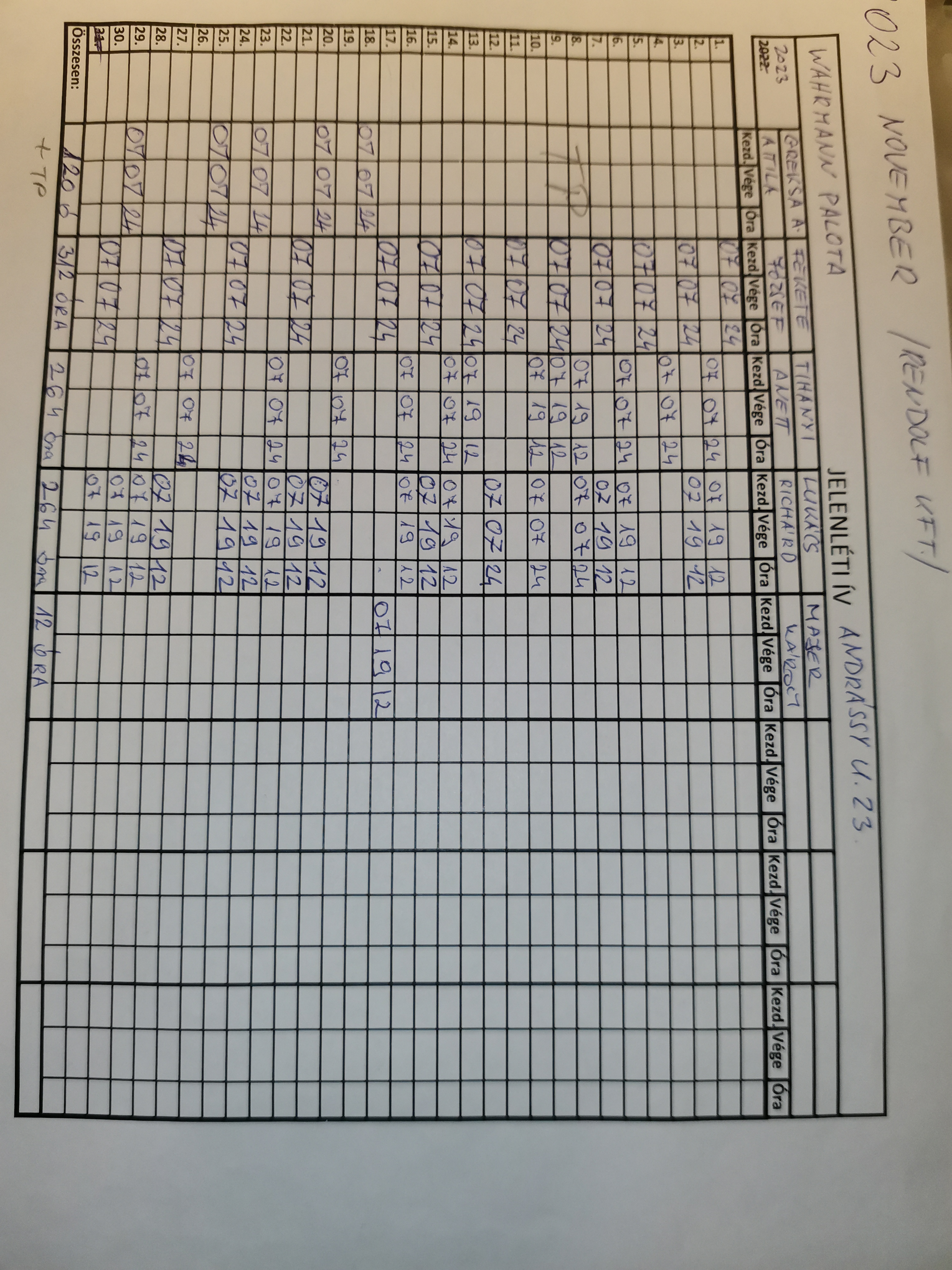 | Szolgálati okmányok nemmegfelelősége | A hó végi zárás miatt előre kitöltött jelenléti ív. |