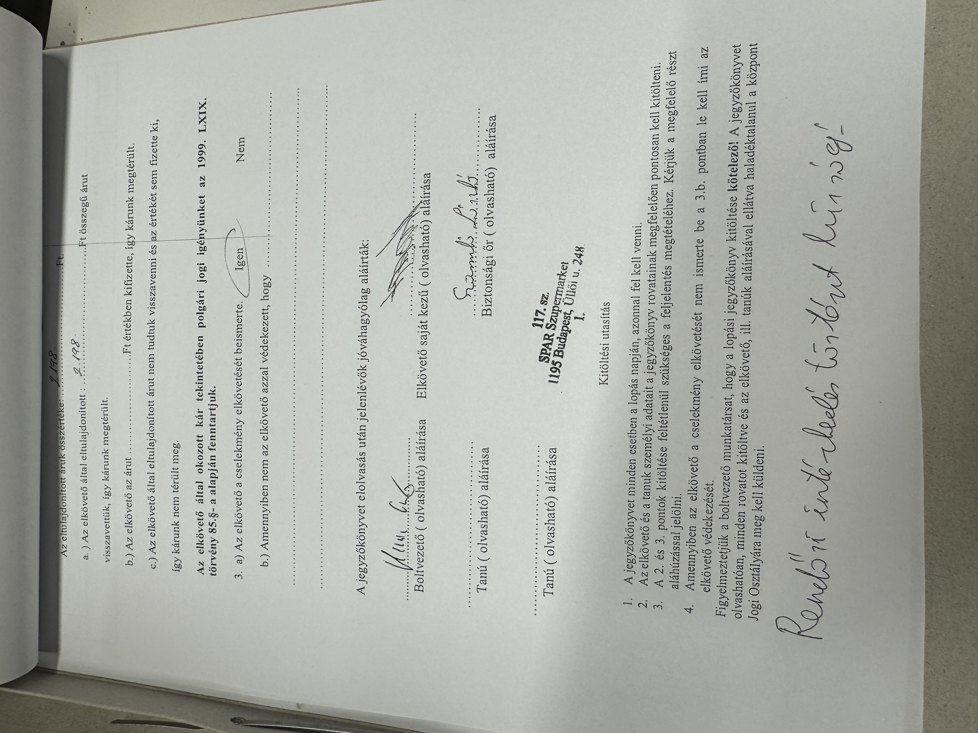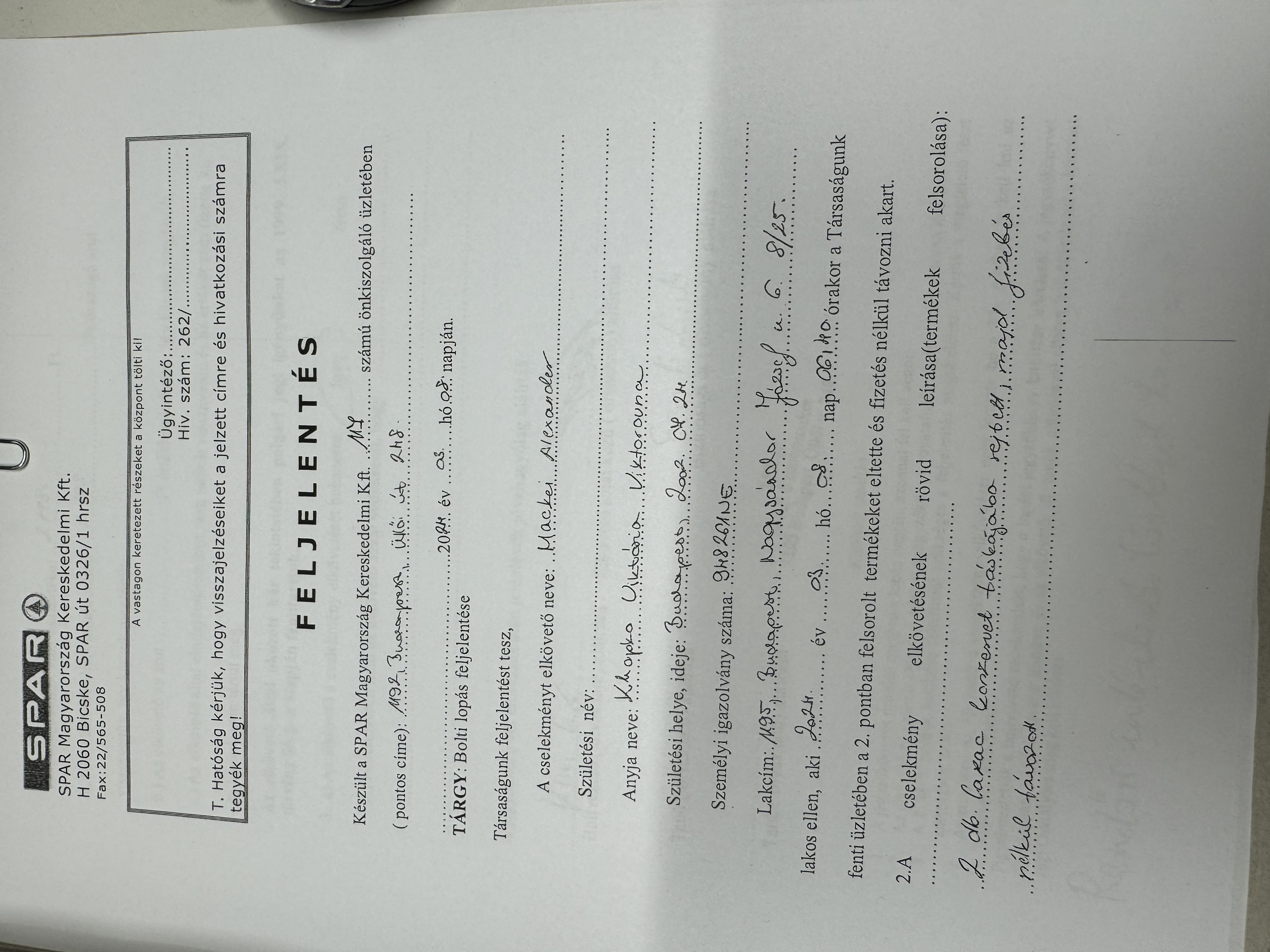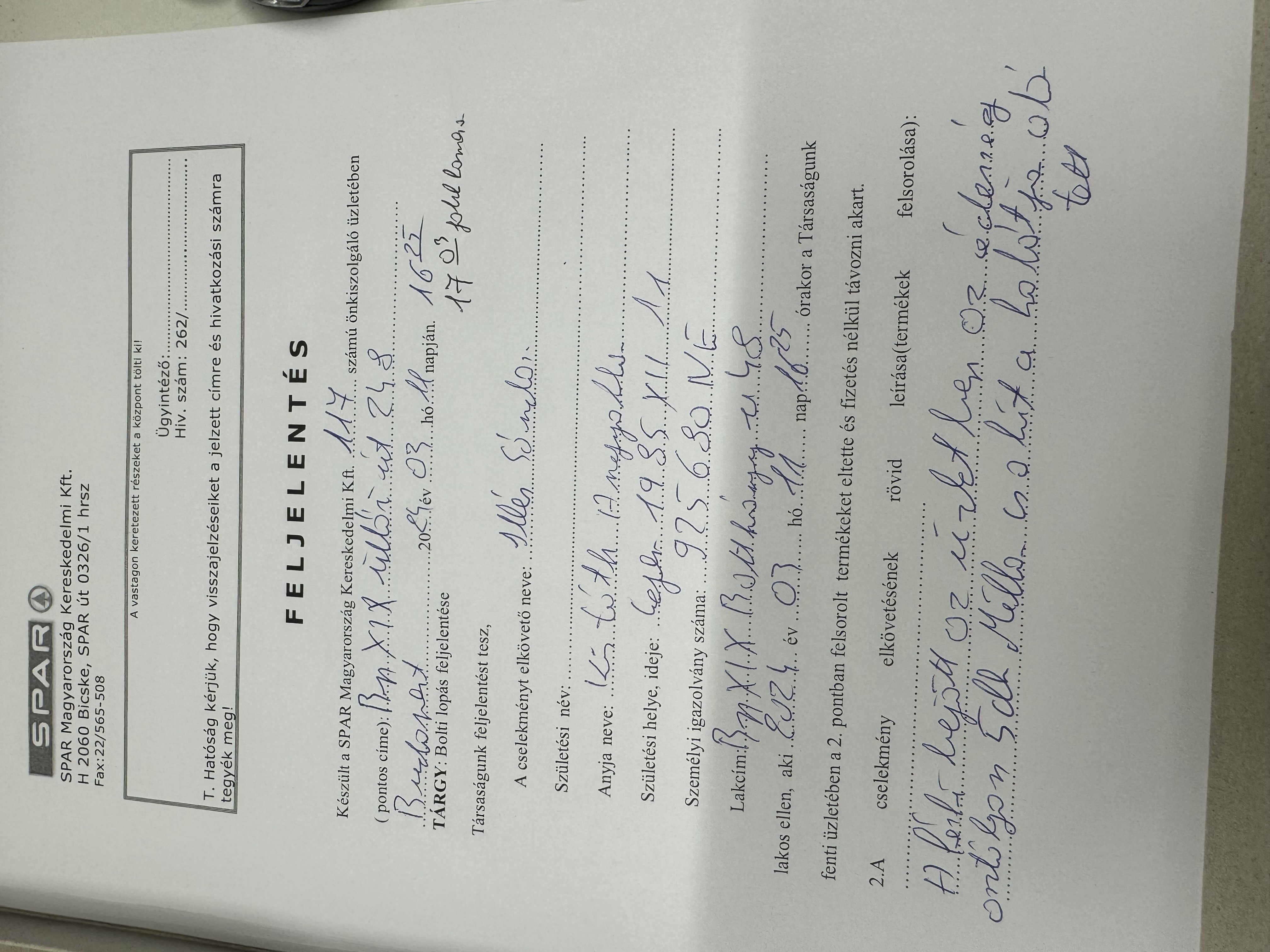 | Van-e az ellenőrzött személynek egyéb észrevétele, javaslata? | Nem |