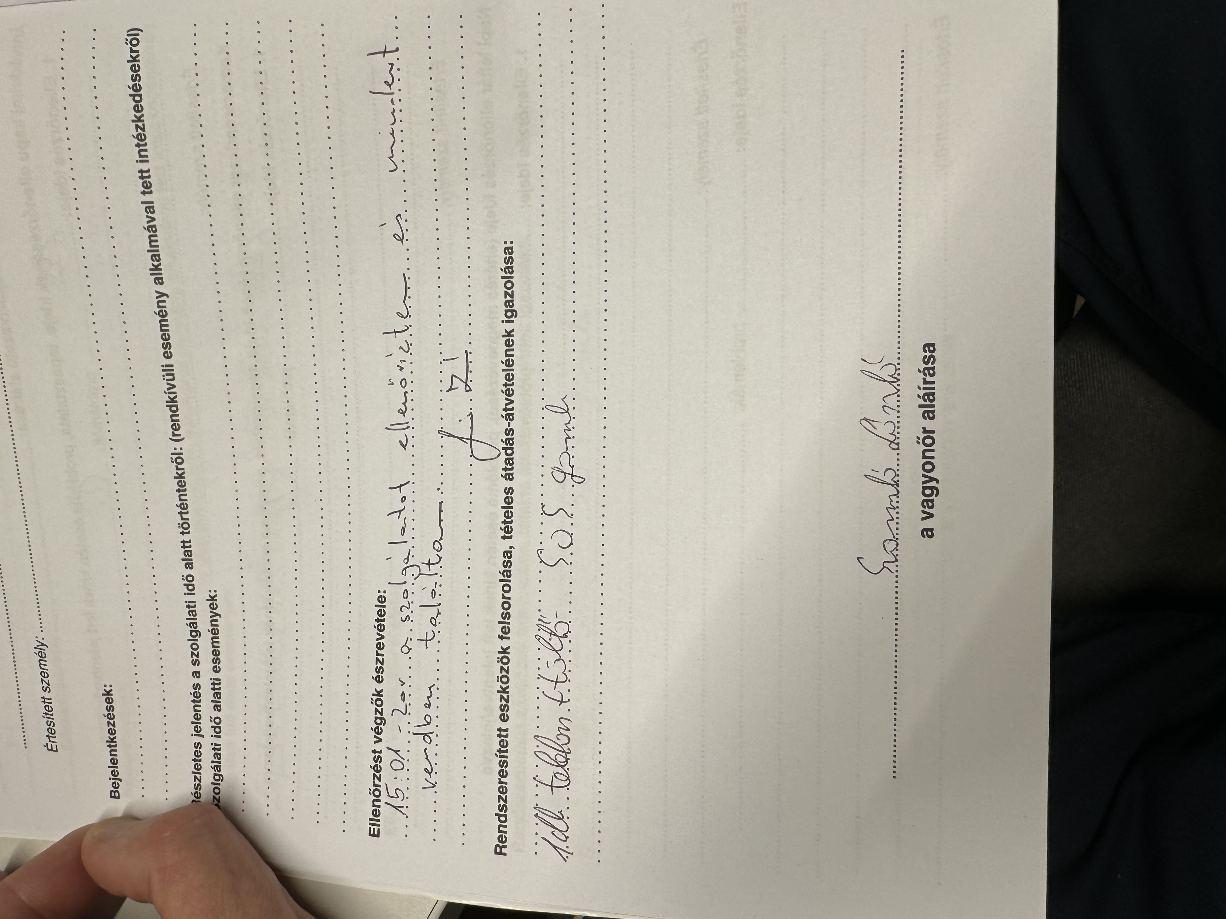| Az őrzési helyre kiadott munkaeszközök megléte | Megfelel |