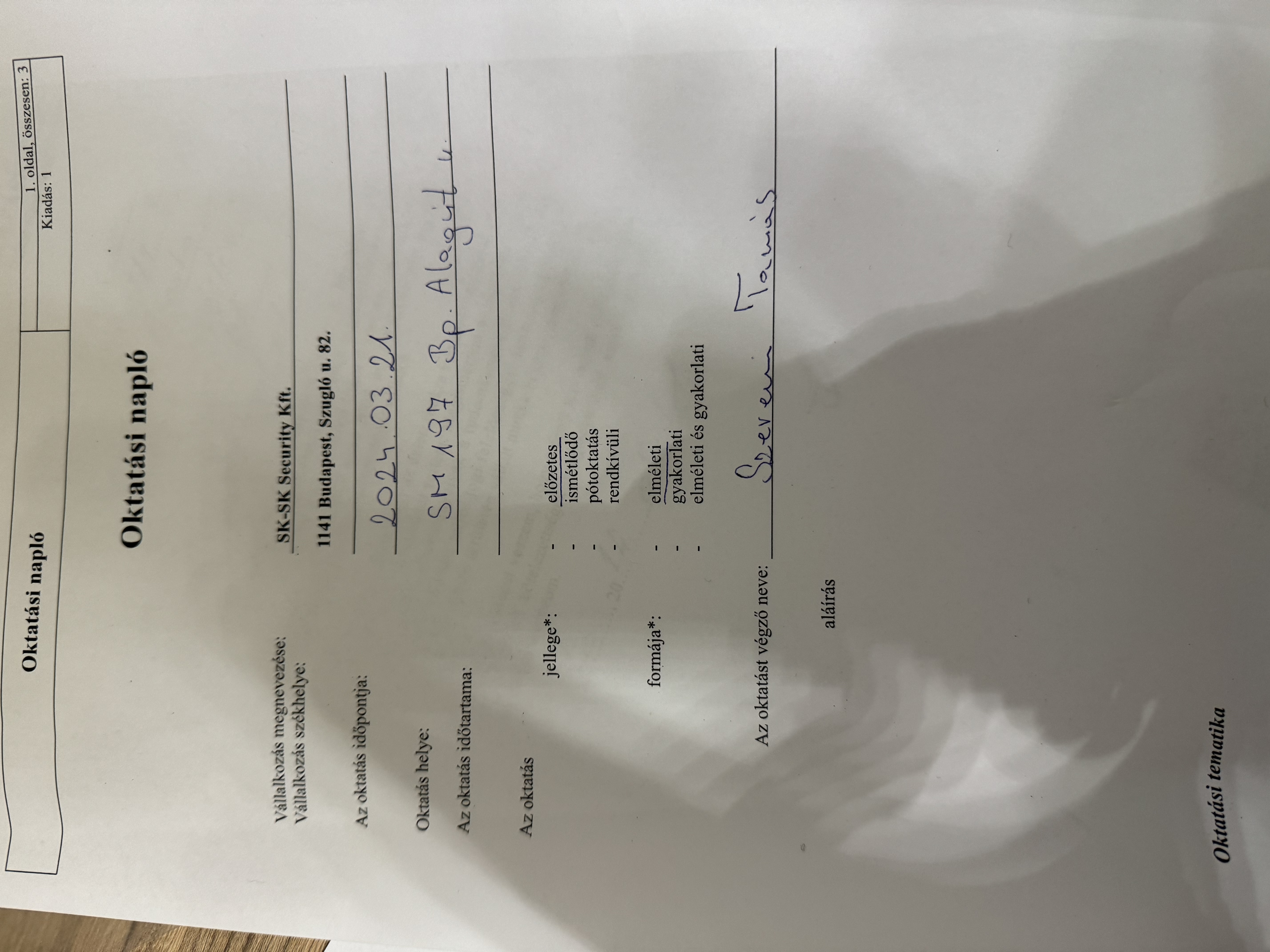 | Történt az ellenőrzéshez kapcsolódóan oktatás? | Nem |