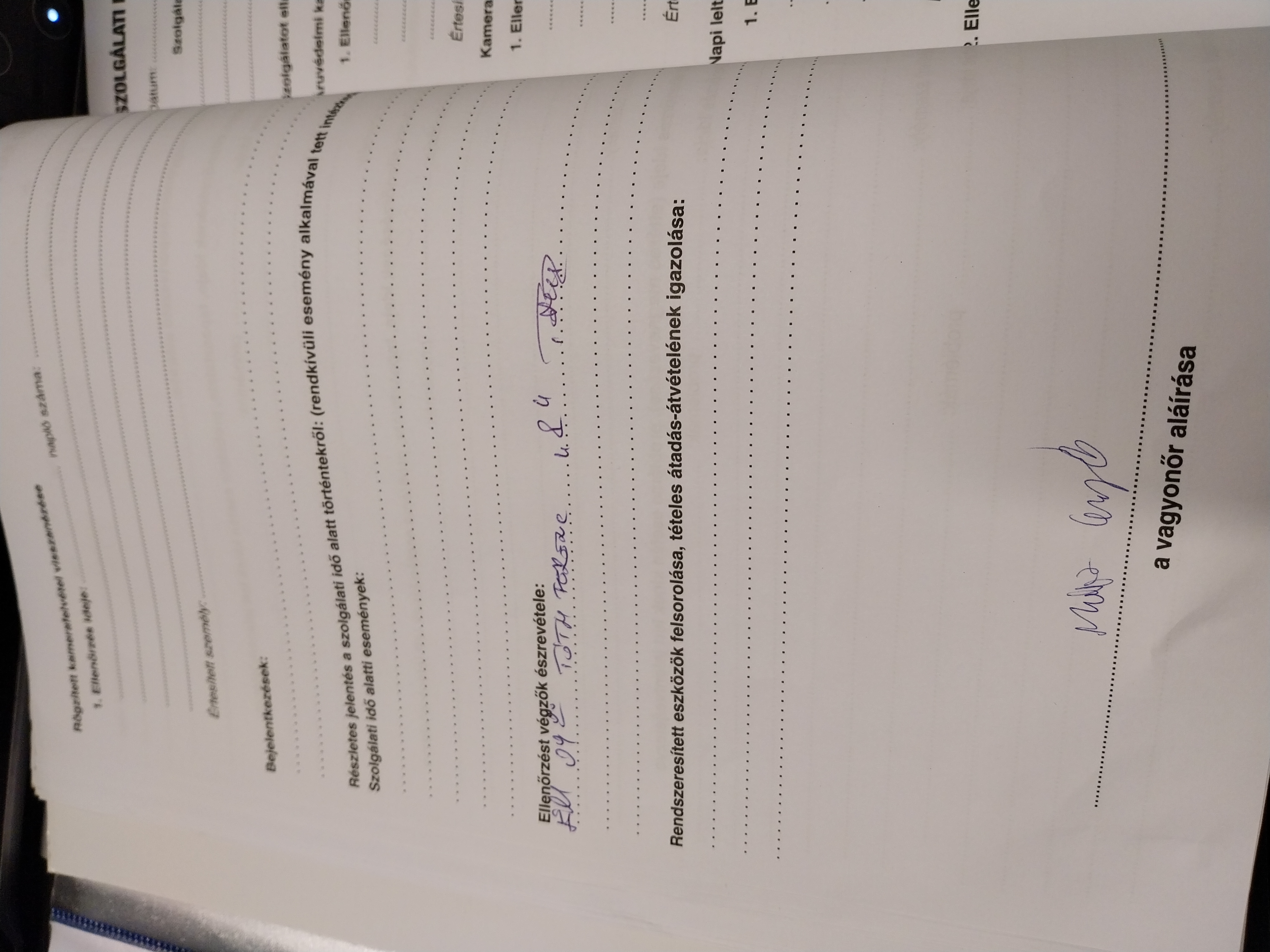 | Az őrzési helyre kiadott munkaeszközök megléte | Megfelel |