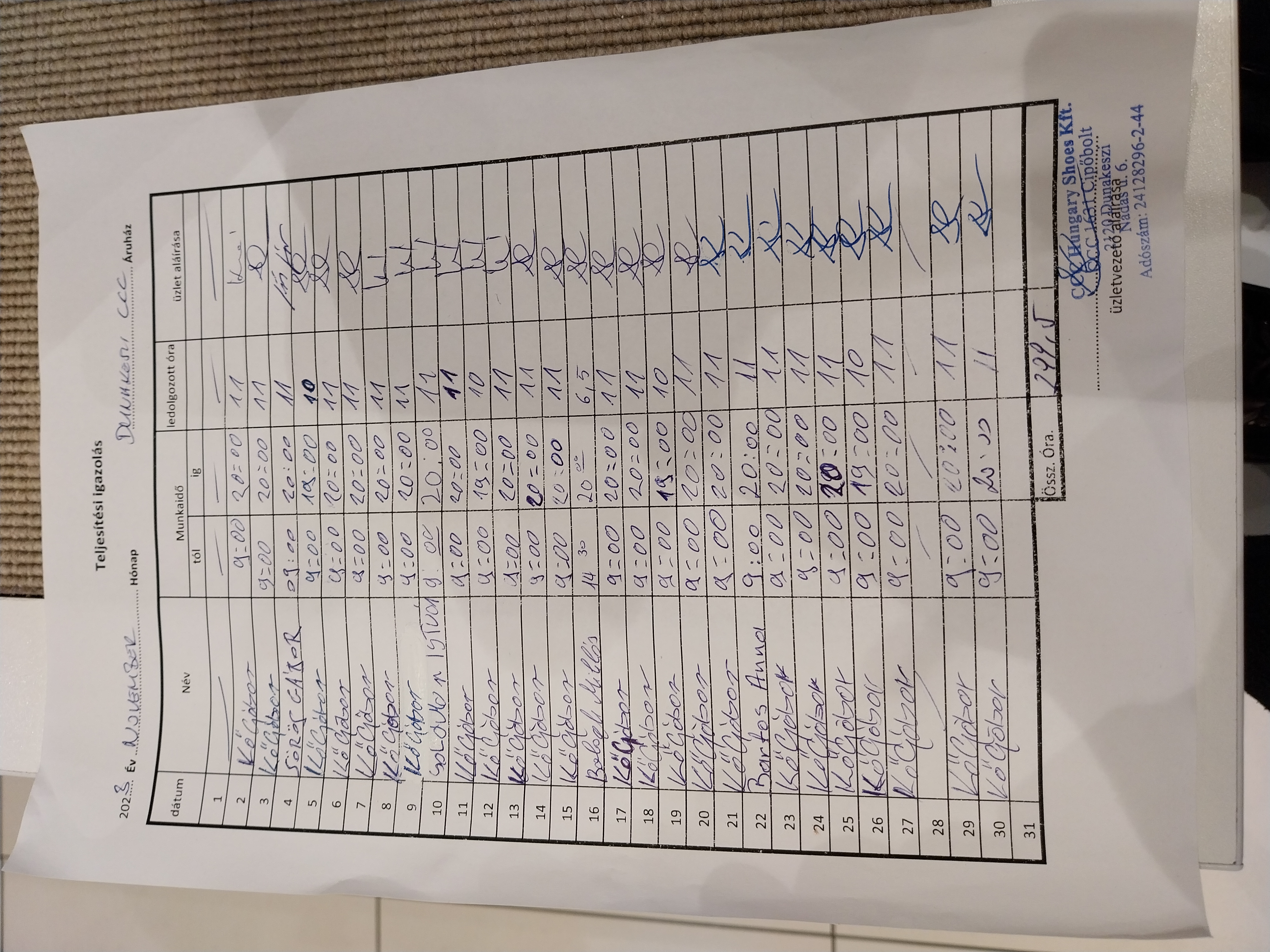 | A munkaidő nyilvántartás (jelenléti ív) vezetése | Megfelel |