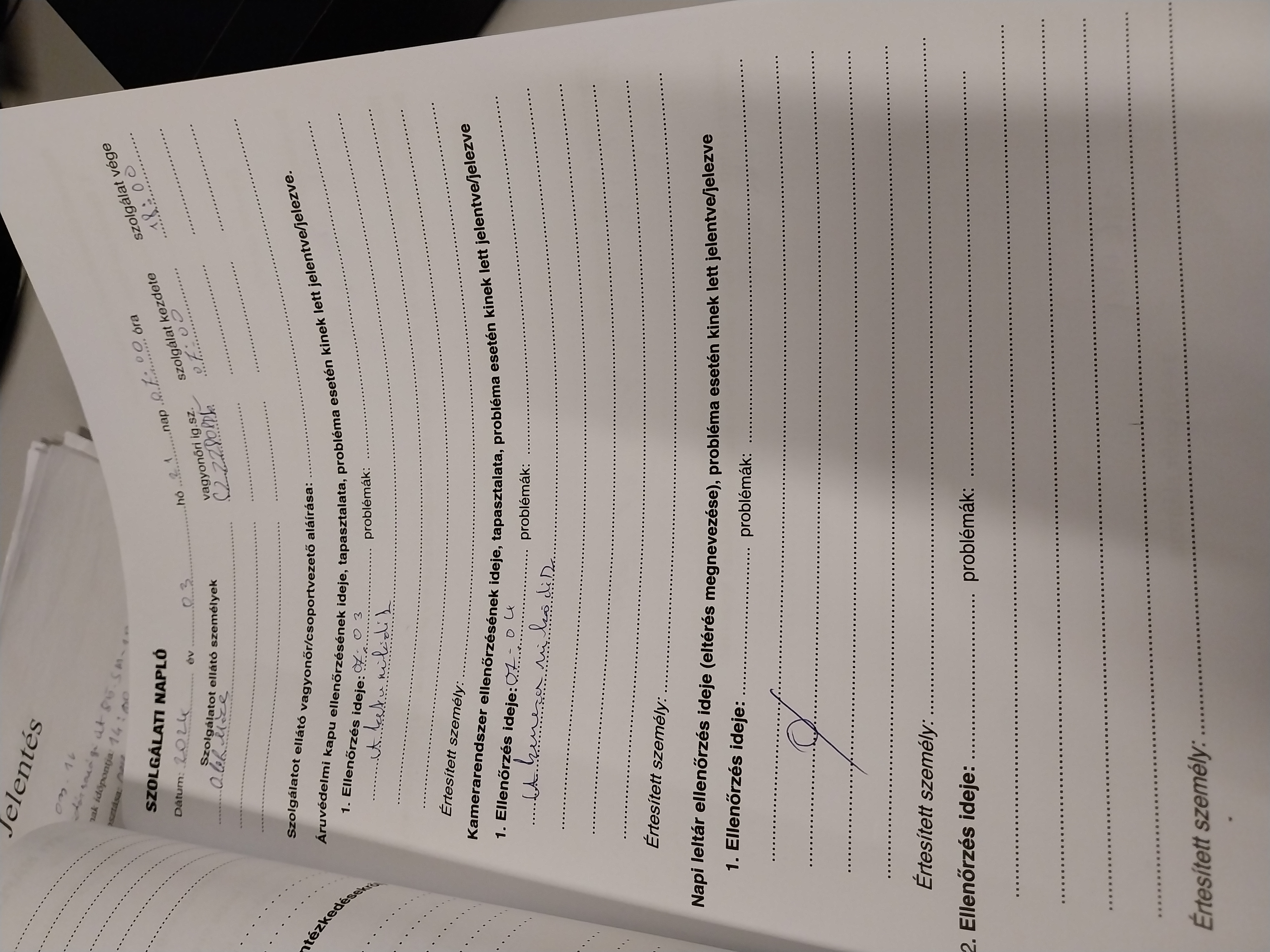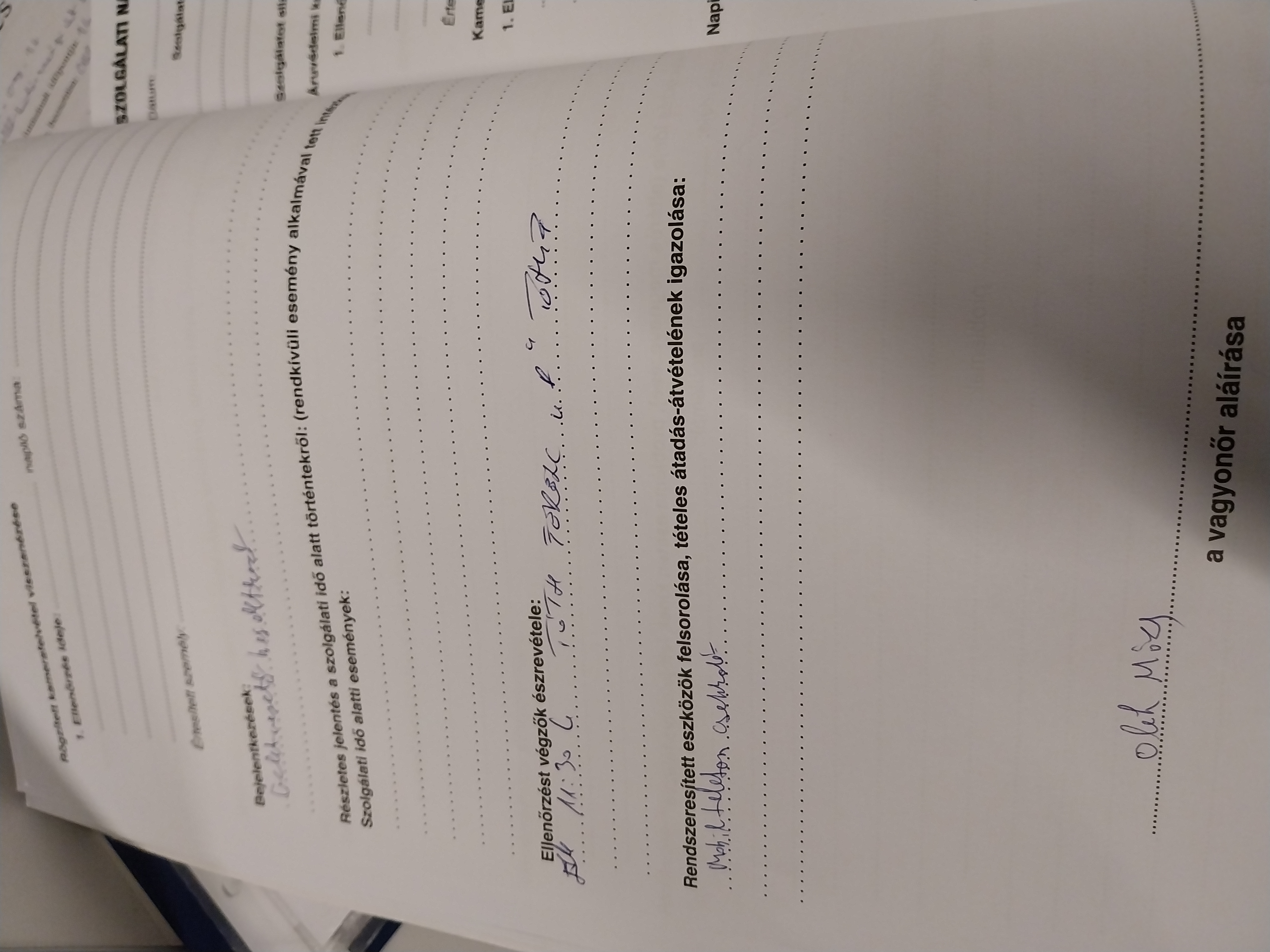 | Az őrzési helyre kiadott munkaeszközök megléte | Megfelel |